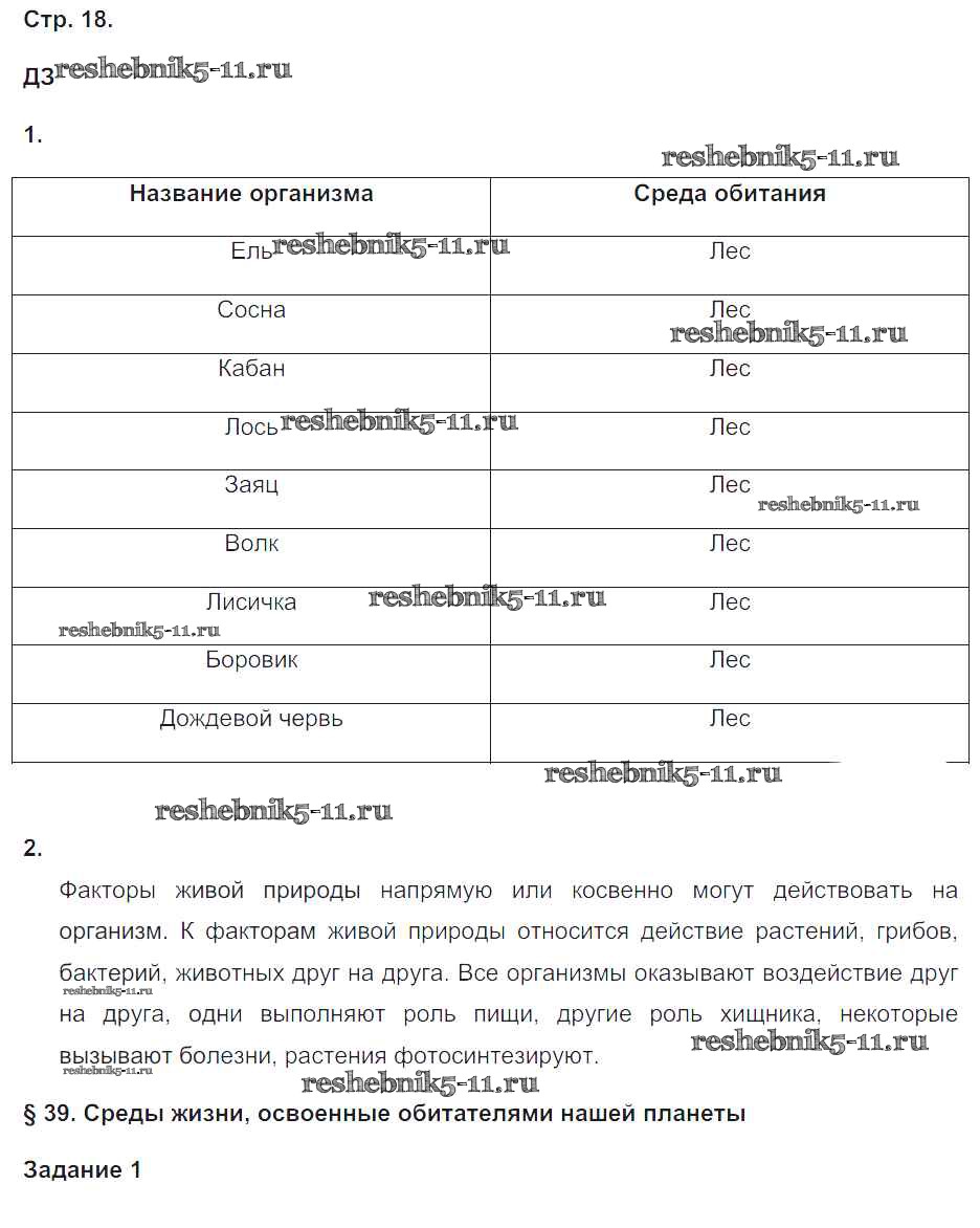 Готовая домашняя работа с ответами по Биологии за 5, 6 класс Сухова, Строганов Рабочая тетрадь Алгоритм успеха Часть 1, 2 Вентана-граф 2015 ФГОС - Часть 2. Страницы 18