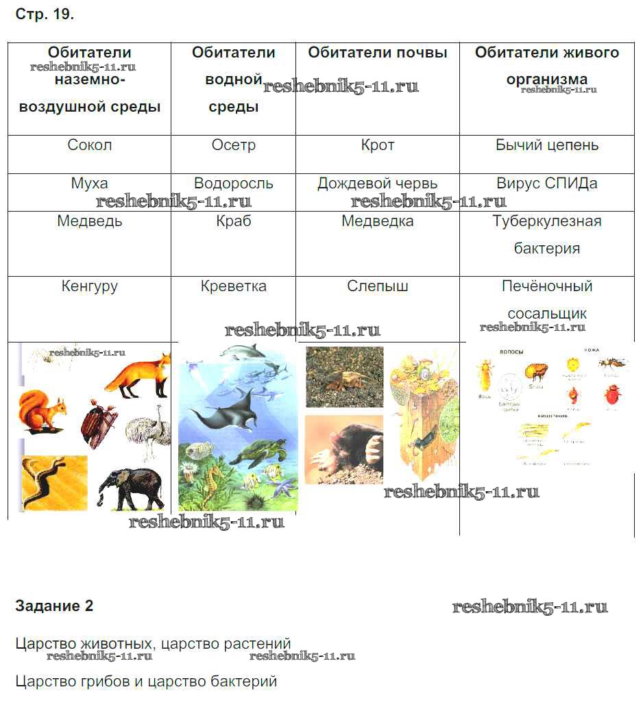 Готовая домашняя работа с ответами по Биологии за 5, 6 класс Сухова, Строганов Рабочая тетрадь Алгоритм успеха Часть 1, 2 Вентана-граф 2015 ФГОС - Часть 2. Страницы 19