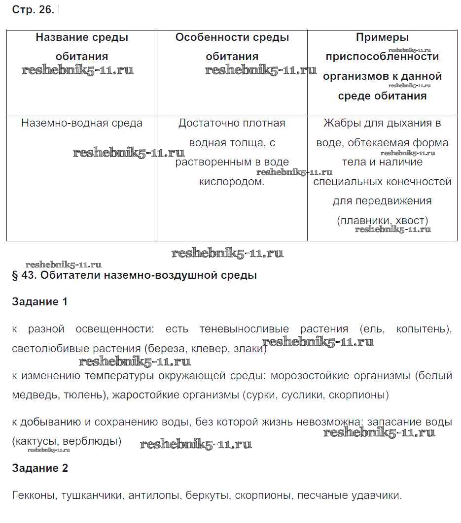 Готовая домашняя работа с ответами по Биологии за 5, 6 класс Сухова, Строганов Рабочая тетрадь Алгоритм успеха Часть 1, 2 Вентана-граф 2015 ФГОС - Часть 2. Страницы 26