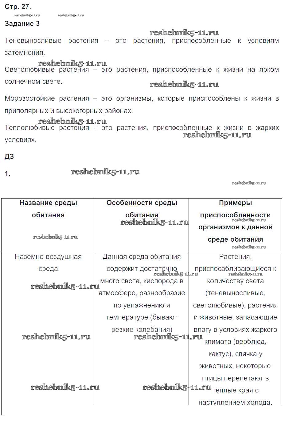 Готовая домашняя работа с ответами по Биологии за 5, 6 класс Сухова, Строганов Рабочая тетрадь Алгоритм успеха Часть 1, 2 Вентана-граф 2015 ФГОС - Часть 2. Страницы 27