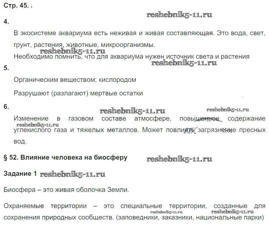 Готовая домашняя работа с ответами по Биологии за 5, 6 класс Сухова, Строганов Рабочая тетрадь Алгоритм успеха Часть 1, 2 Вентана-граф 2015 ФГОС - Часть 2. Страницы 45