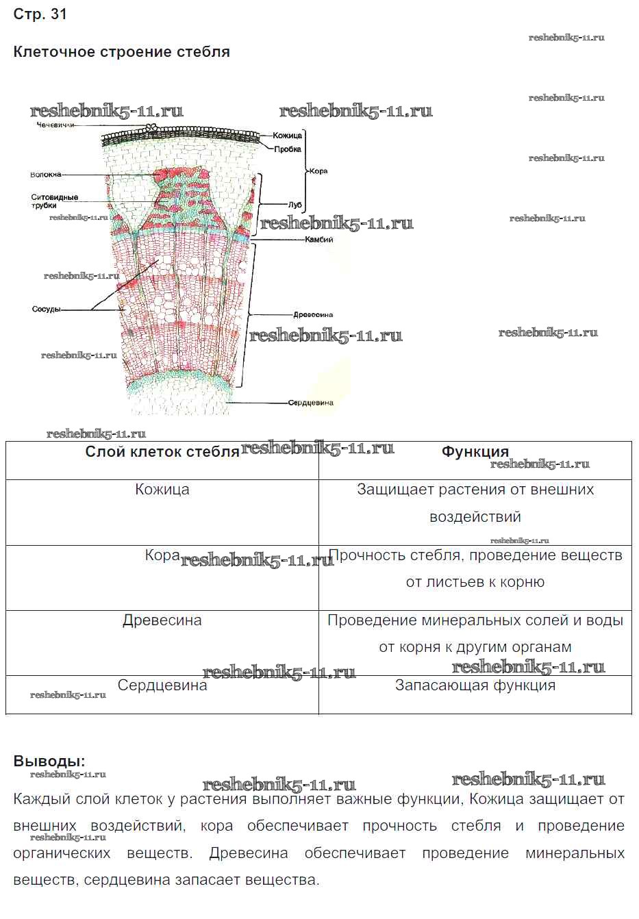 Готовая домашняя работа с ответами по Биологии за 5, 6 класс Сухорукова, Кучменко Тетрадь-практикум Сферы Просвещение 2019 ФГОС - Страницы 31
