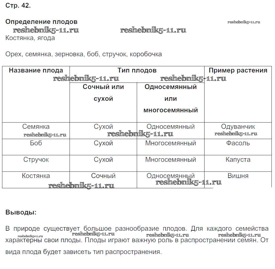 Готовая домашняя работа с ответами по Биологии за 5, 6 класс Сухорукова, Кучменко Тетрадь-практикум Сферы Просвещение 2019 ФГОС - Страницы 42