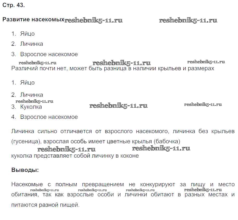 Готовая домашняя работа с ответами по Биологии за 5, 6 класс Сухорукова, Кучменко Тетрадь-практикум Сферы Просвещение 2019 ФГОС - Страницы 43