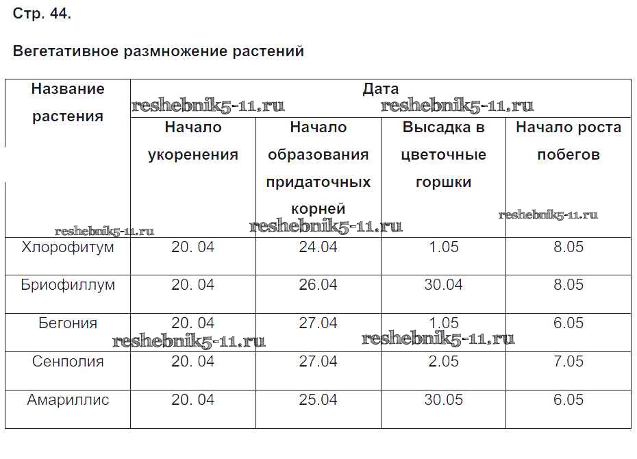 Готовая домашняя работа с ответами по Биологии за 5, 6 класс Сухорукова, Кучменко Тетрадь-практикум Сферы Просвещение 2019 ФГОС - Страницы 44
