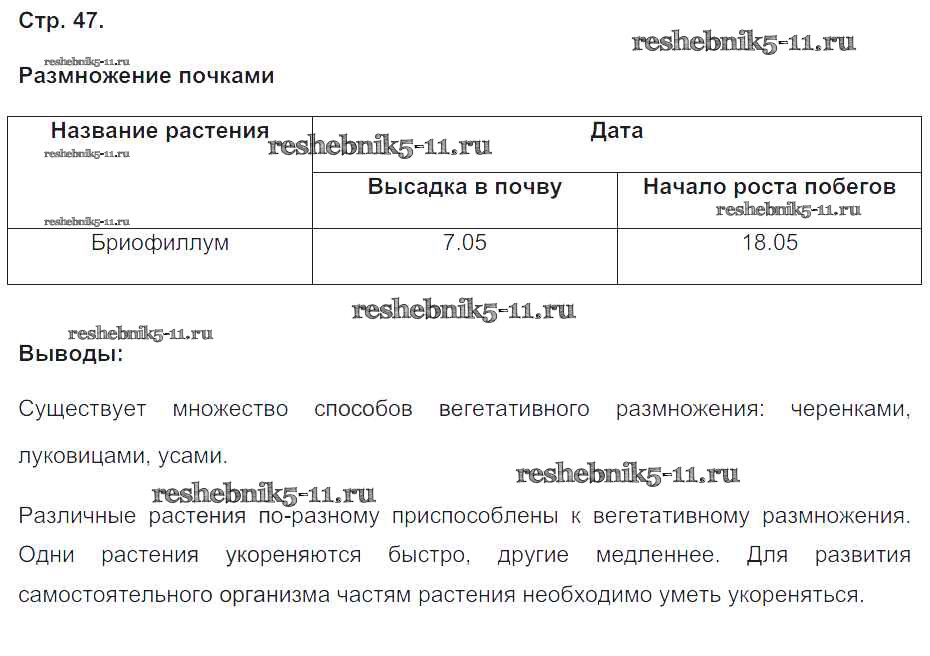 Готовая домашняя работа с ответами по Биологии за 5, 6 класс Сухорукова, Кучменко Тетрадь-практикум Сферы Просвещение 2019 ФГОС - Страницы 47
