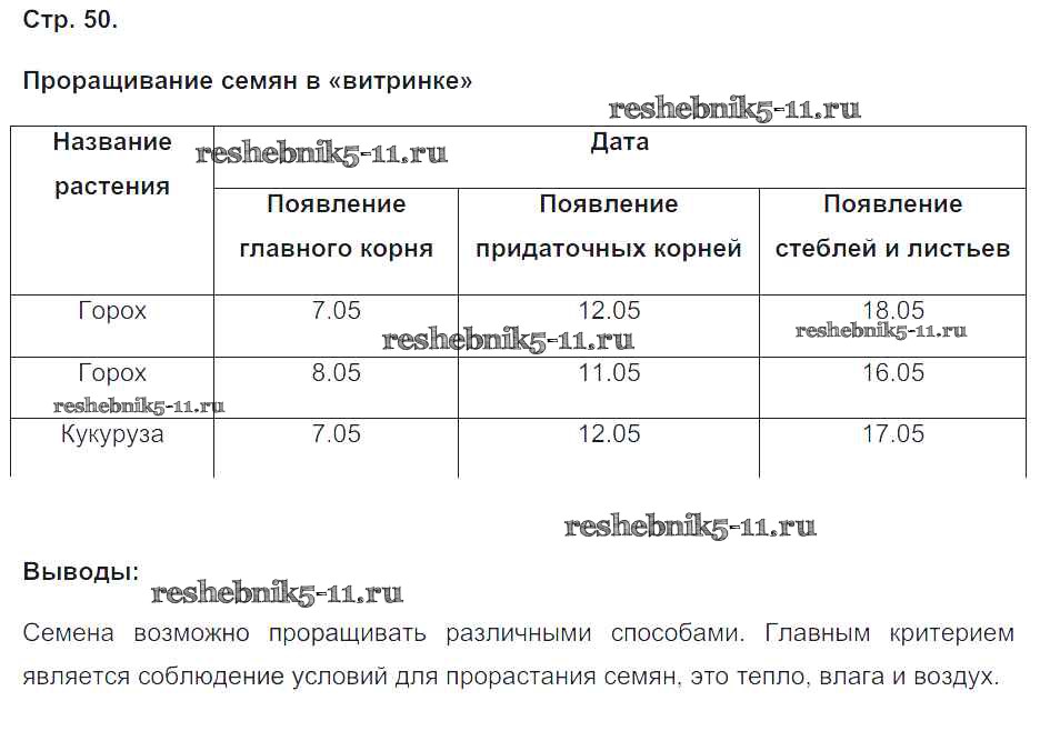 Готовая домашняя работа с ответами по Биологии за 5, 6 класс Сухорукова, Кучменко Тетрадь-практикум Сферы Просвещение 2019 ФГОС - Страницы 50
