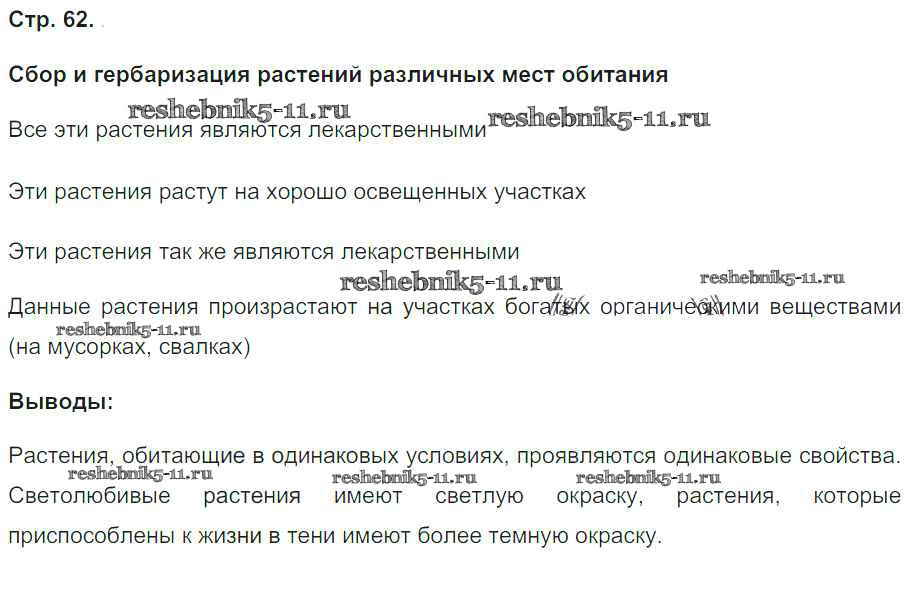 Готовая домашняя работа с ответами по Биологии за 5, 6 класс Сухорукова, Кучменко Тетрадь-практикум Сферы Просвещение 2019 ФГОС - Страницы 62