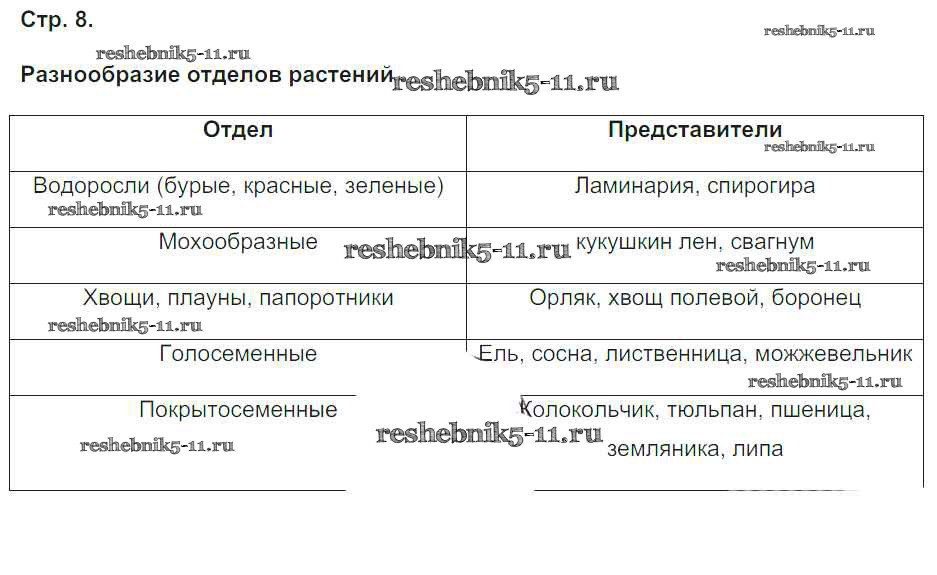 Готовая домашняя работа с ответами по Биологии за 5, 6 класс Сухорукова, Кучменко Тетрадь-практикум Сферы Просвещение 2019 ФГОС - Страницы 8