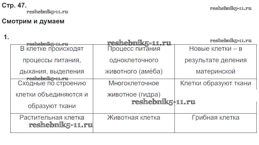 Готовая домашняя работа с ответами по Биологии за 5, 6 класс Сухорукова, Кучменко, Дмитриева Тетрадь-тренажер Сферы Часть 1, 2 Просвещение 2016 ФГОС - Часть 1. Страницы 47