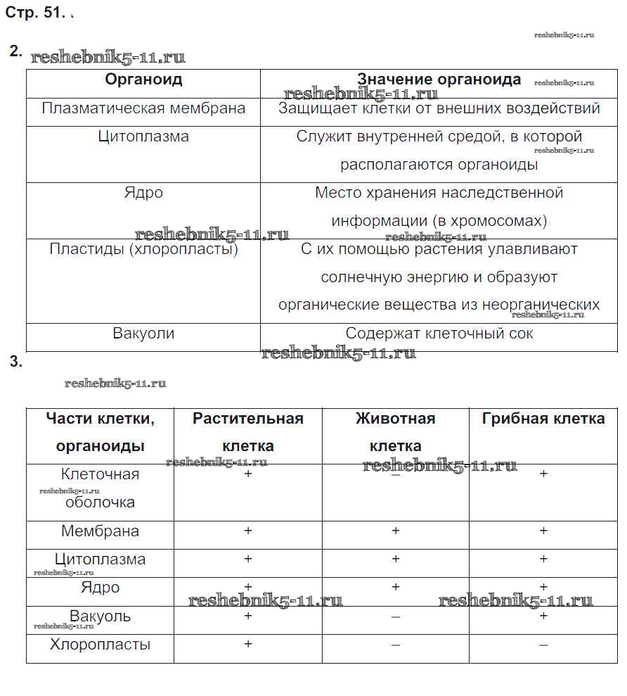 Готовая домашняя работа с ответами по Биологии за 5, 6 класс Сухорукова, Кучменко, Дмитриева Тетрадь-тренажер Сферы Часть 1, 2 Просвещение 2016 ФГОС - Часть 1. Страницы 51