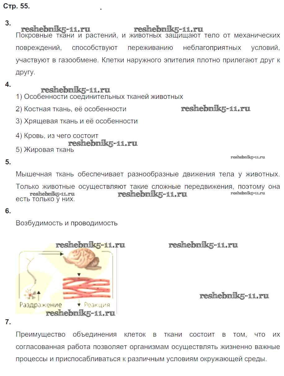 Готовая домашняя работа с ответами по Биологии за 5, 6 класс Сухорукова, Кучменко, Дмитриева Тетрадь-тренажер Сферы Часть 1, 2 Просвещение 2016 ФГОС - Часть 1. Страницы 55