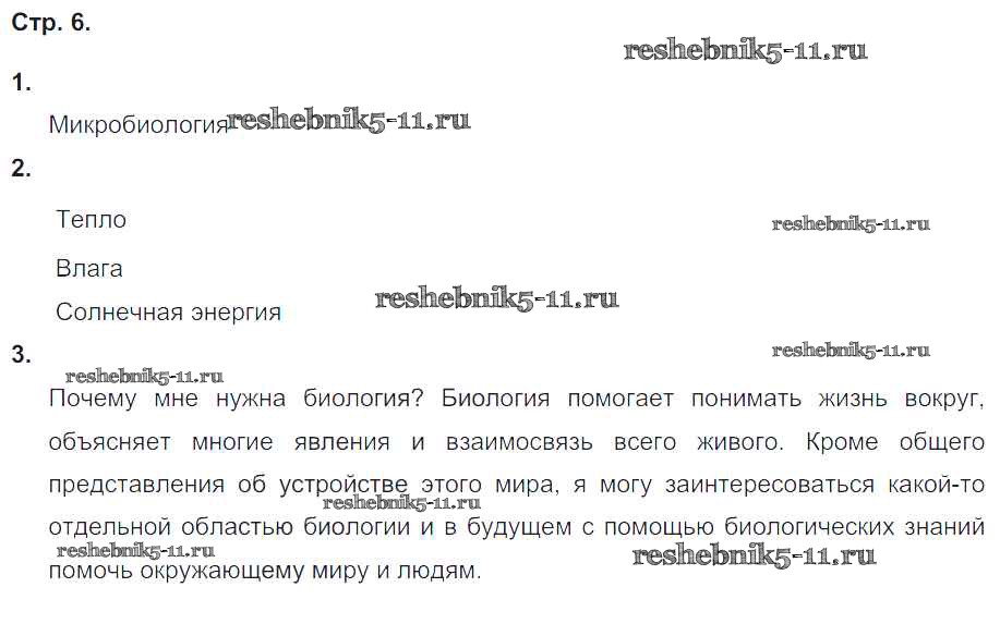 Готовая домашняя работа с ответами по Биологии за 5, 6 класс Сухорукова, Кучменко, Дмитриева Тетрадь-тренажер Сферы Часть 1, 2 Просвещение 2016 ФГОС - Часть 1. Страницы 6