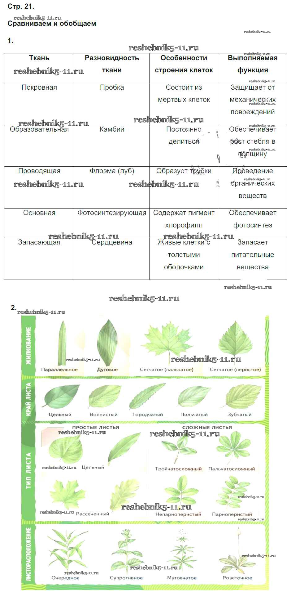 Готовая домашняя работа с ответами по Биологии за 5, 6 класс Сухорукова, Кучменко, Дмитриева Тетрадь-тренажер Сферы Часть 1, 2 Просвещение 2016 ФГОС - Часть 2. Страницы 21