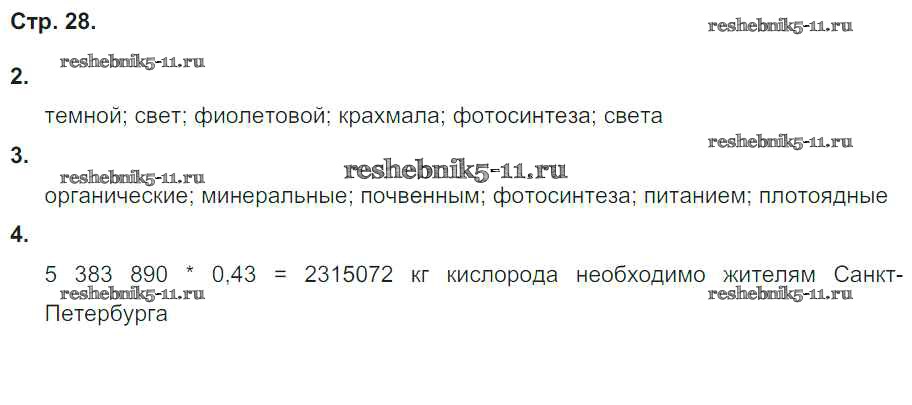 Готовая домашняя работа с ответами по Биологии за 5, 6 класс Сухорукова, Кучменко, Дмитриева Тетрадь-тренажер Сферы Часть 1, 2 Просвещение 2016 ФГОС - Часть 2. Страницы 28