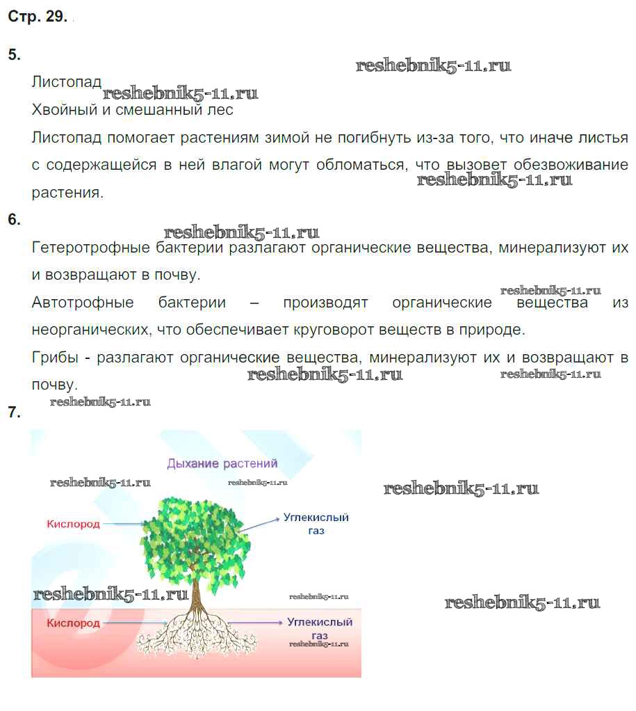 Готовая домашняя работа с ответами по Биологии за 5, 6 класс Сухорукова, Кучменко, Дмитриева Тетрадь-тренажер Сферы Часть 1, 2 Просвещение 2016 ФГОС - Часть 2. Страницы 29