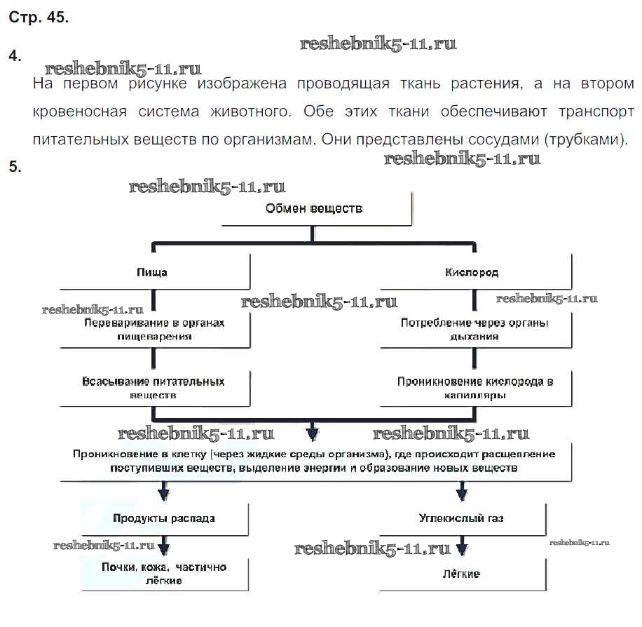 Готовая домашняя работа с ответами по Биологии за 5, 6 класс Сухорукова, Кучменко, Дмитриева Тетрадь-тренажер Сферы Часть 1, 2 Просвещение 2016 ФГОС - Часть 2. Страницы 45
