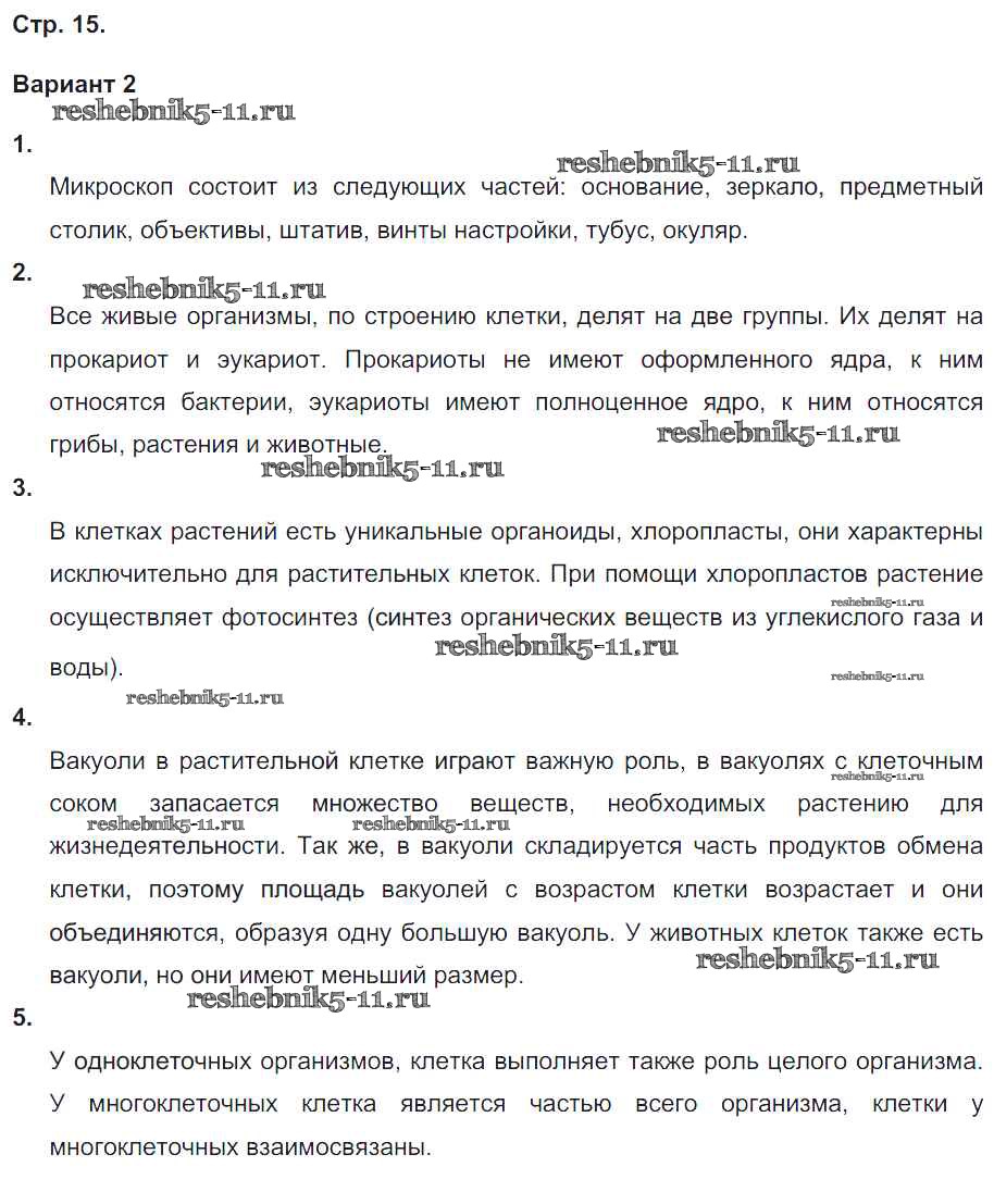 Готовая домашняя работа с ответами по Биологии за 5, 6 класс Сухорукова, Кучменко Тетрадь-экзаменатор Сферы Просвещение 2017 ФГОС - Страницы 15