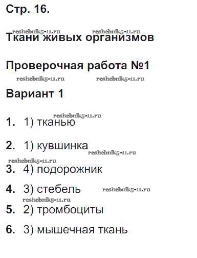 Готовая домашняя работа с ответами по Биологии за 5, 6 класс Сухорукова, Кучменко Тетрадь-экзаменатор Сферы Просвещение 2017 ФГОС - Страницы 16