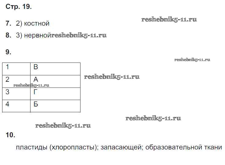 Готовая домашняя работа с ответами по Биологии за 5, 6 класс Сухорукова, Кучменко Тетрадь-экзаменатор Сферы Просвещение 2017 ФГОС - Страницы 19