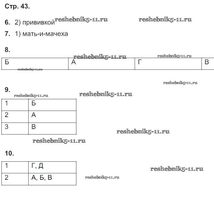 Готовая домашняя работа с ответами по Биологии за 5, 6 класс Сухорукова, Кучменко Тетрадь-экзаменатор Сферы Просвещение 2017 ФГОС - Страницы 43