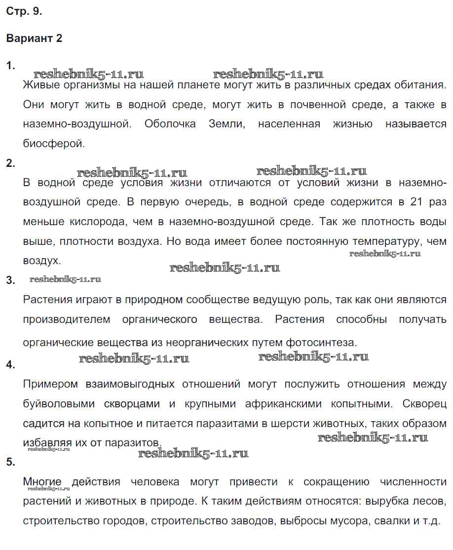 Готовая домашняя работа с ответами по Биологии за 5, 6 класс Сухорукова, Кучменко Тетрадь-экзаменатор Сферы Просвещение 2017 ФГОС - Страницы 9