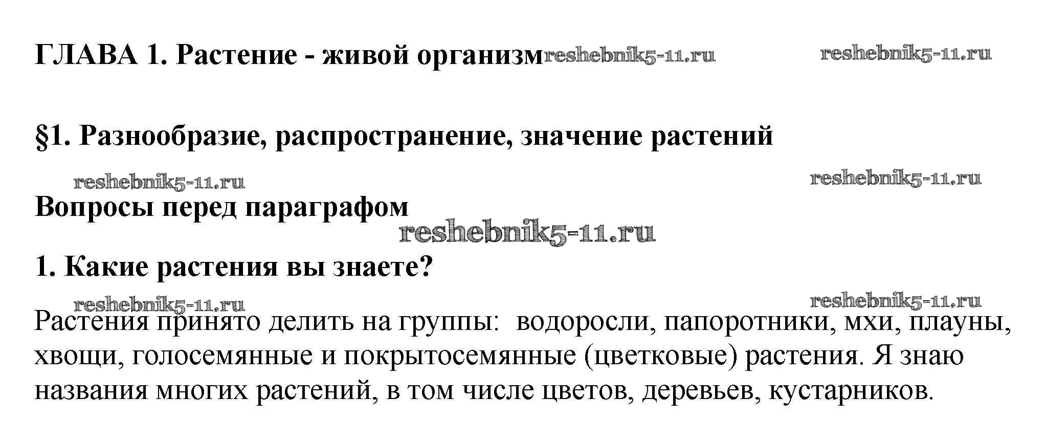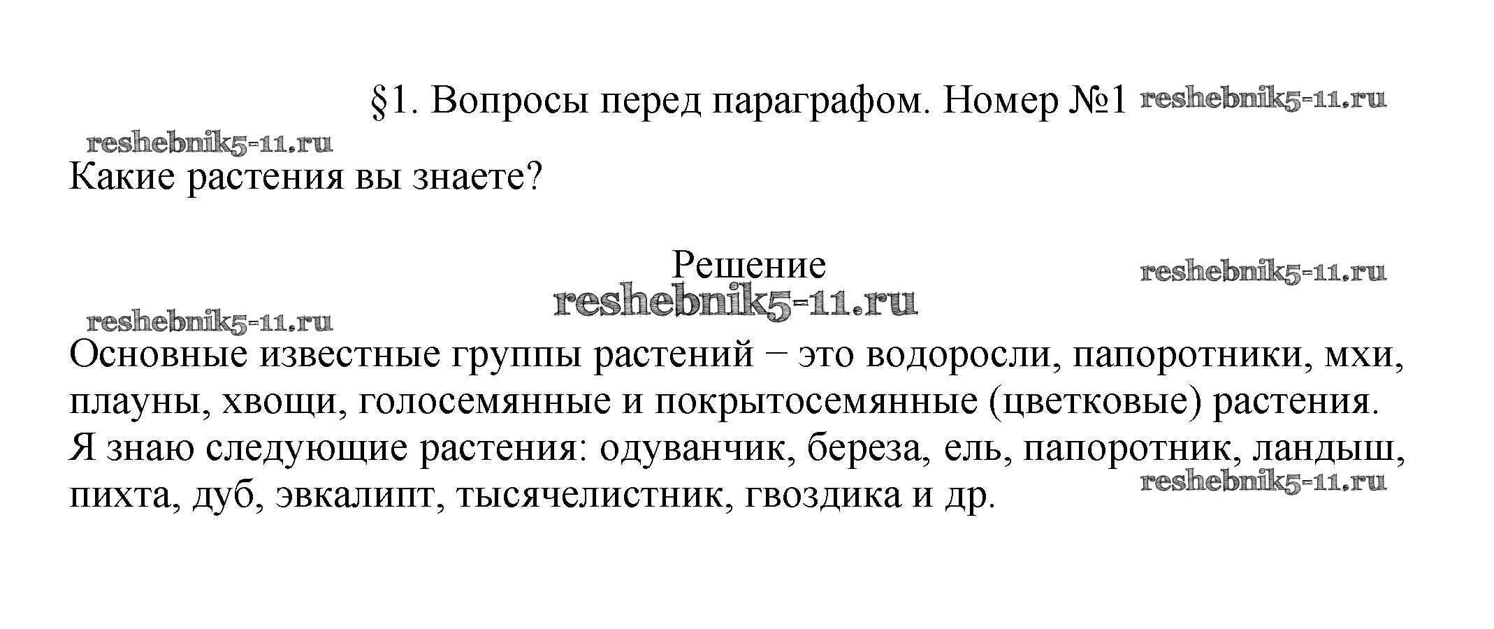 Биология за 6 класс Пасечник Учебник Линейный курс Дрофа вопрос перед параграфом 1