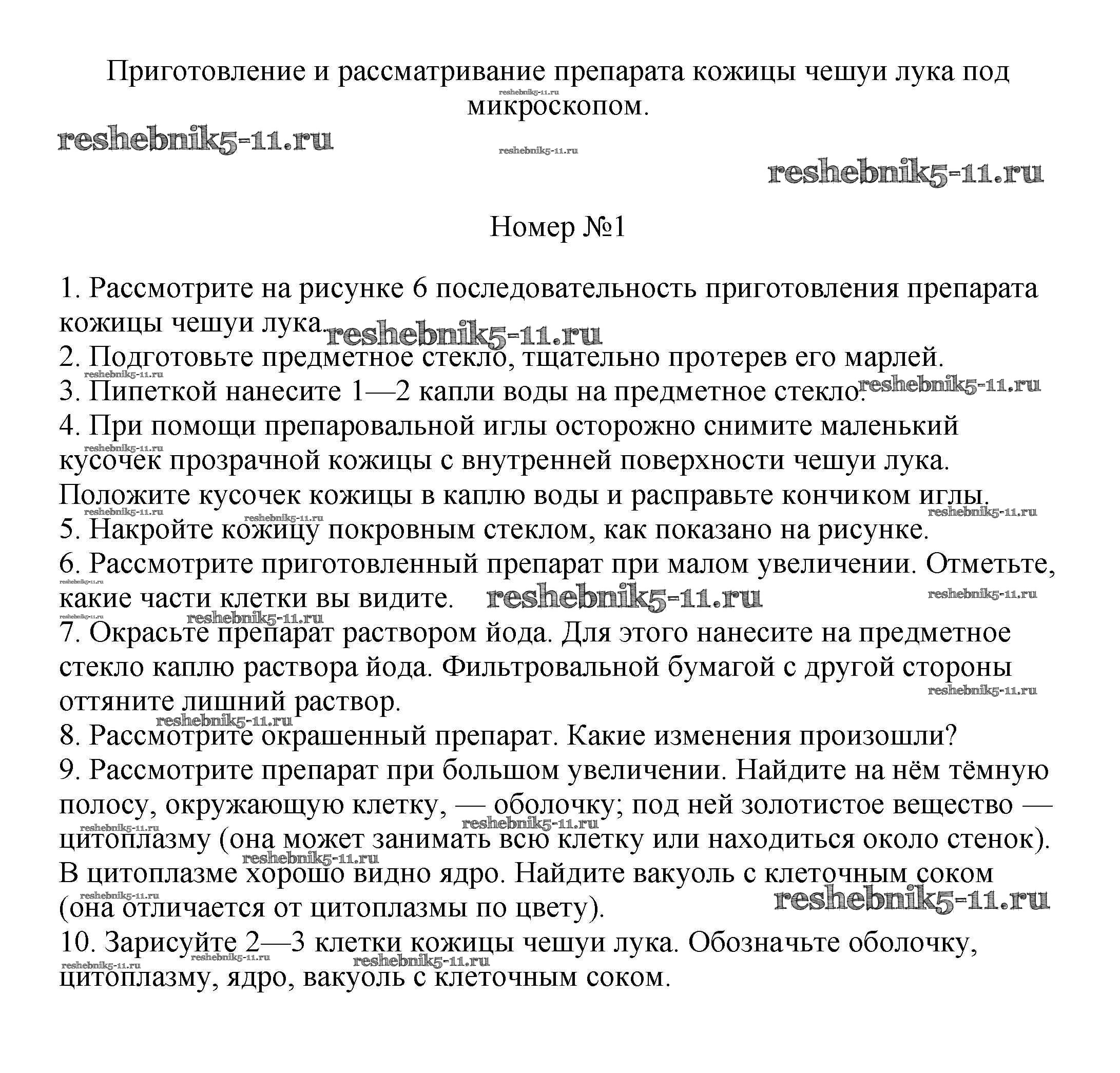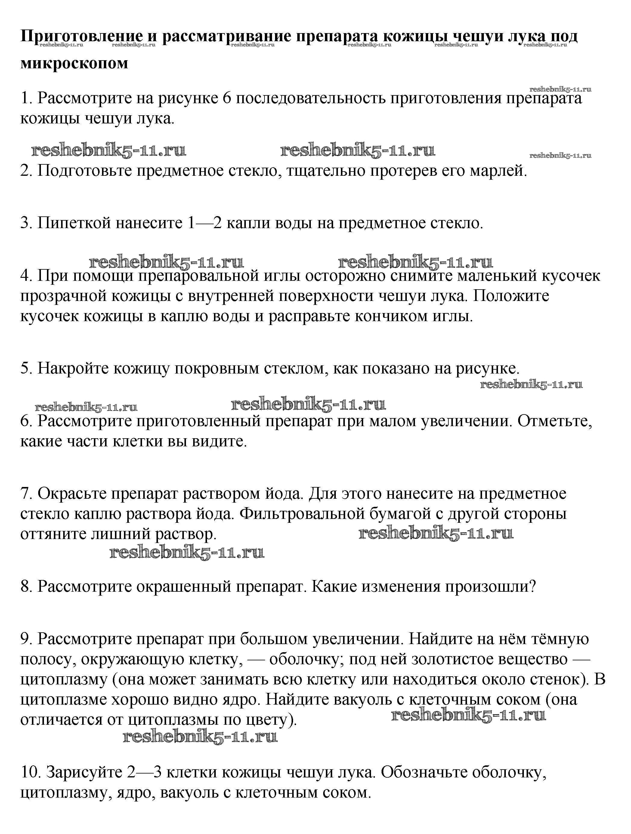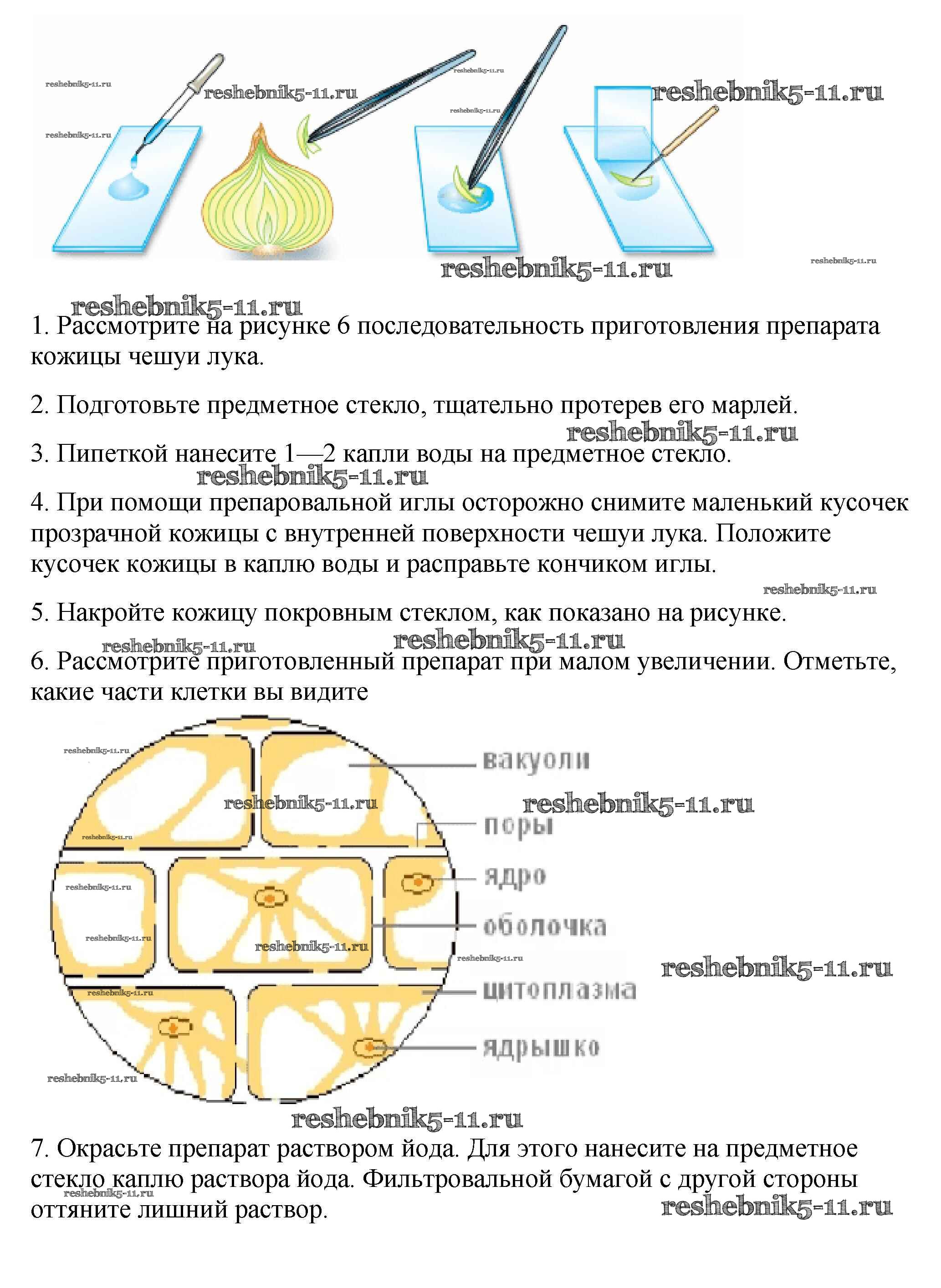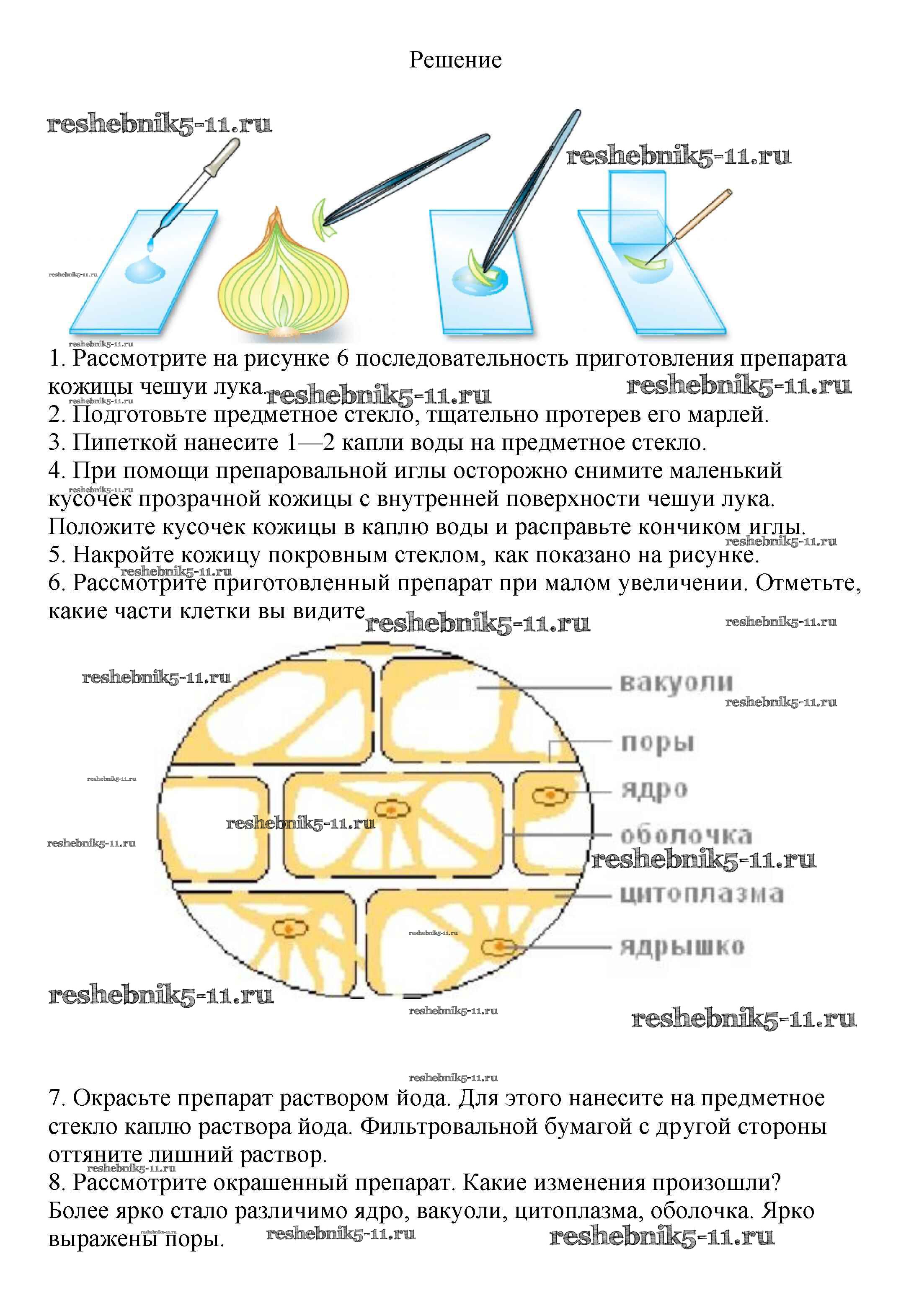 Готовая домашняя работа с ответами по Биологии за 6 класс Пасечник Учебник Линейный курс Дрофа 2020 ФГОС - Приготовление и рассматривание препарата кожицы чешуи лука под микроскопом 1