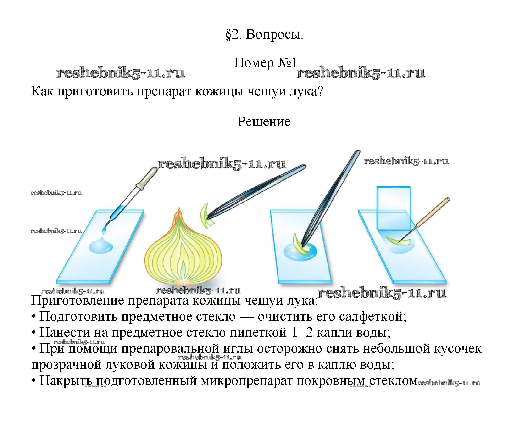 Приготовление и рассматривание препарата кожицы чешуи лука под микроскопом