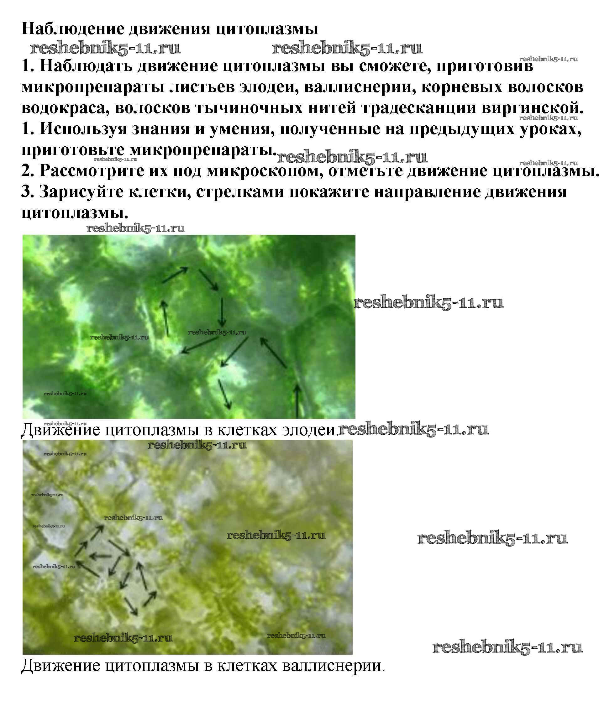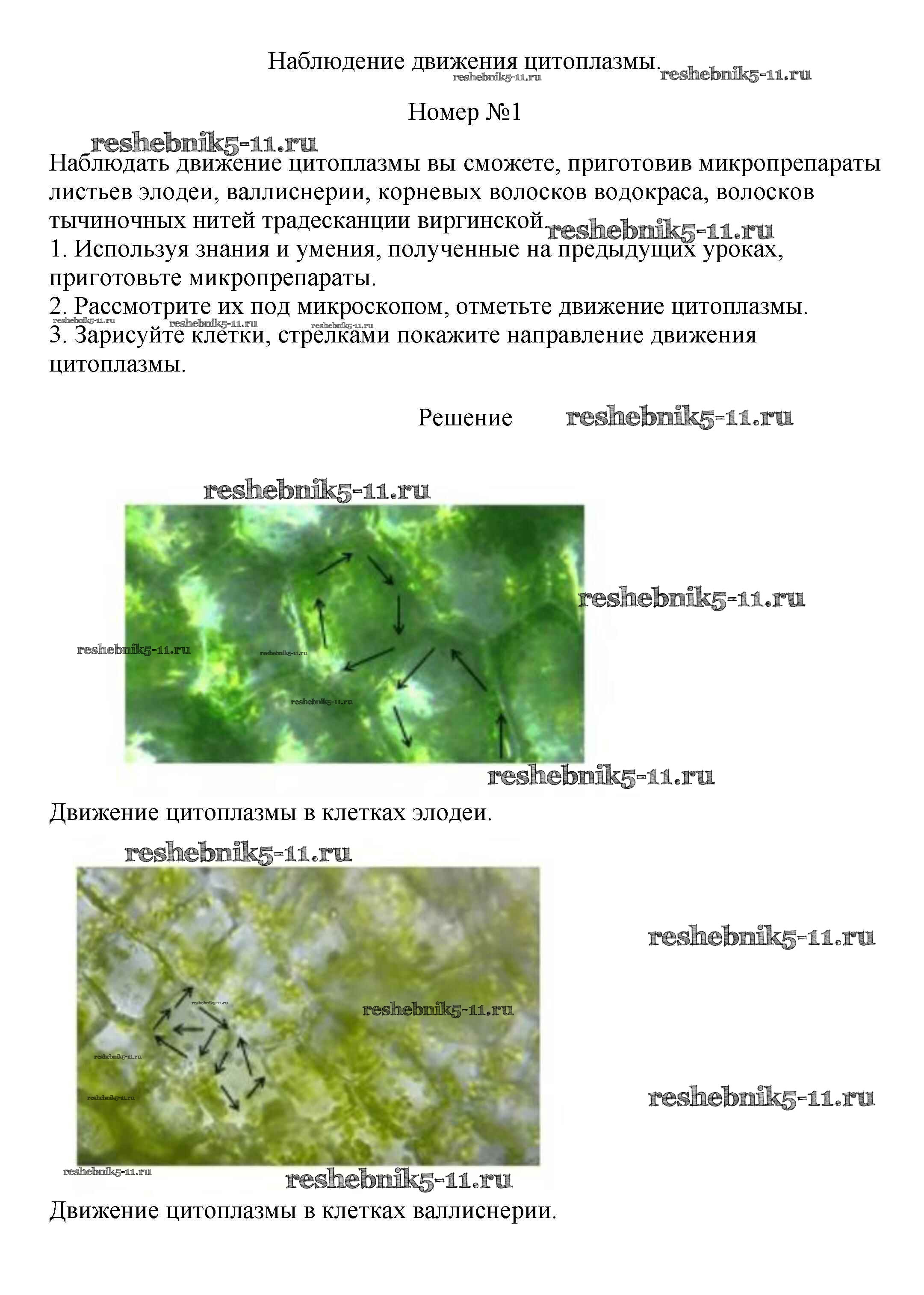 Решебник №1 / §4 / наблюдение движения цитоплазмы / 1