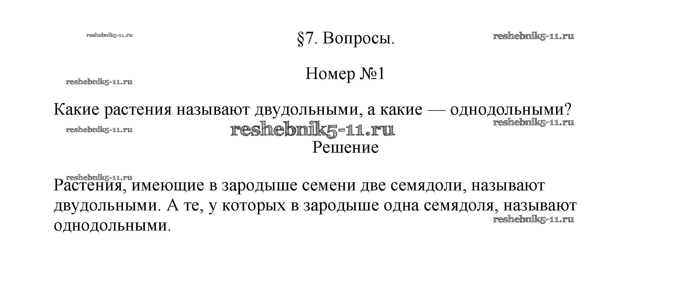Готовая домашняя работа с ответами по Биологии за 6 класс Пасечник Учебник Линейный курс Дрофа 2020 ФГОС - Вопросы 1