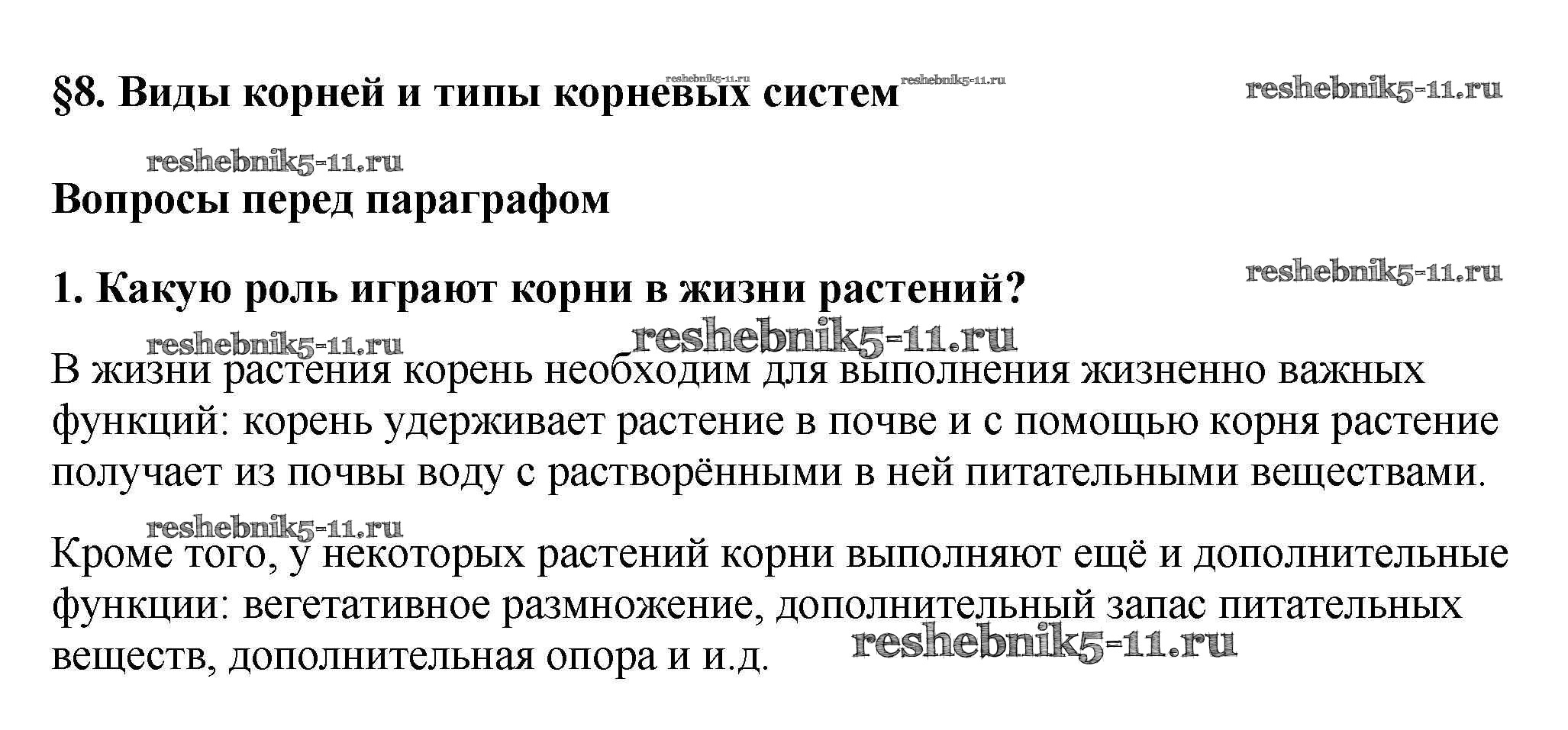 Биология за 6 класс Пасечник Учебник Линейный курс Дрофа вопрос перед параграфом 1