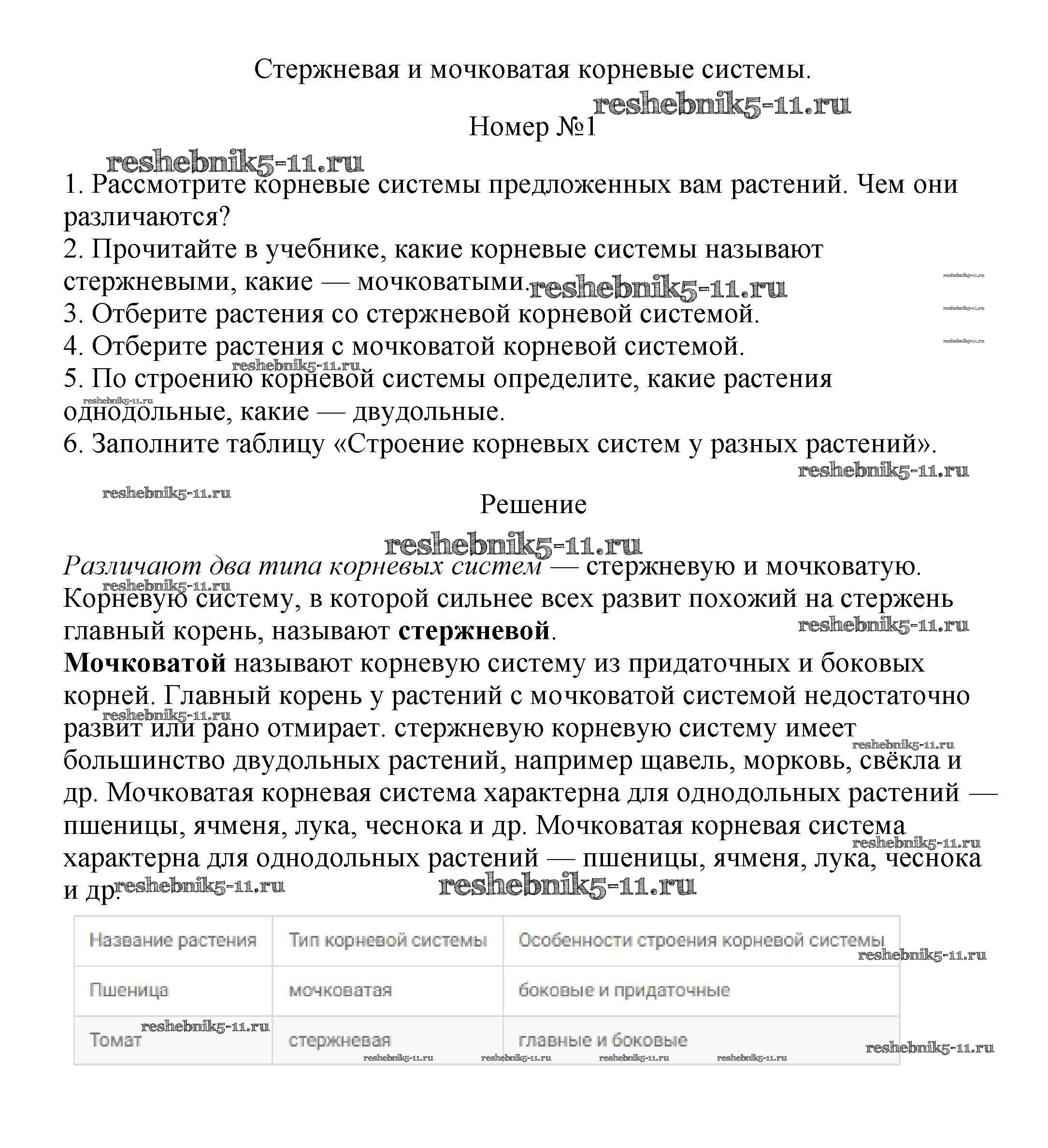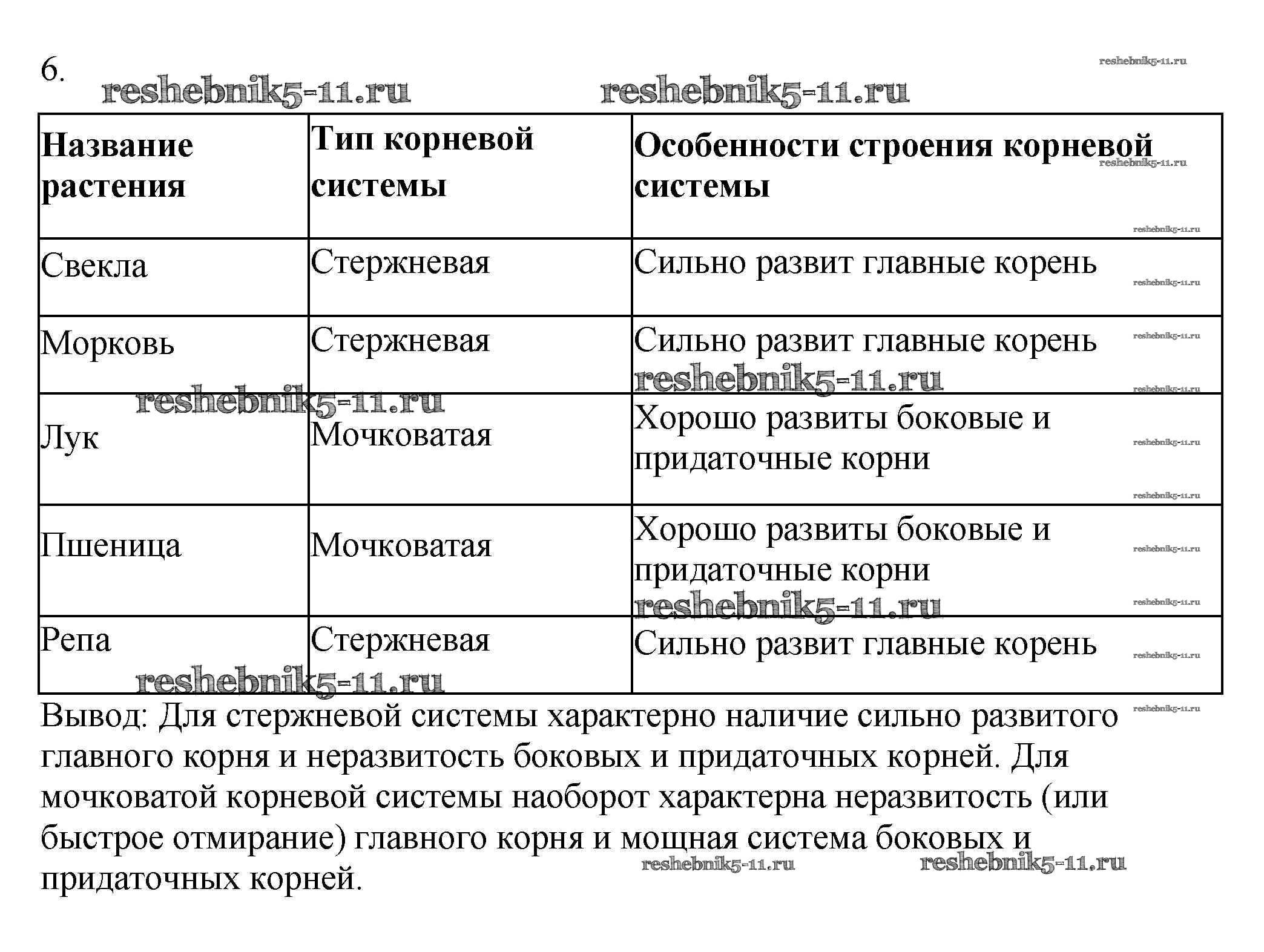 Готовая домашняя работа с ответами по Биологии за 6 класс Пасечник Учебник Линейный курс Дрофа 2020 ФГОС - Стержневая и мочковатая корневые системы 1