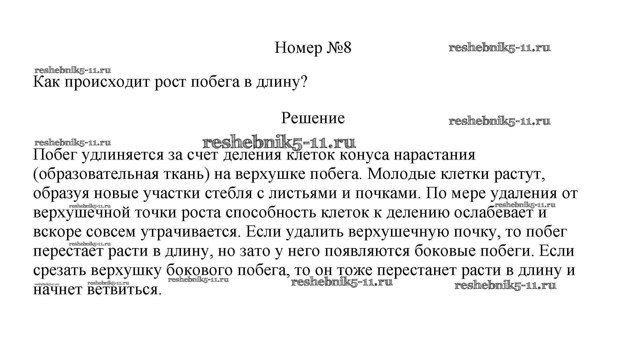 Биология за 6 класс Пасечник Учебник Линейный курс Дрофа вопрос 8