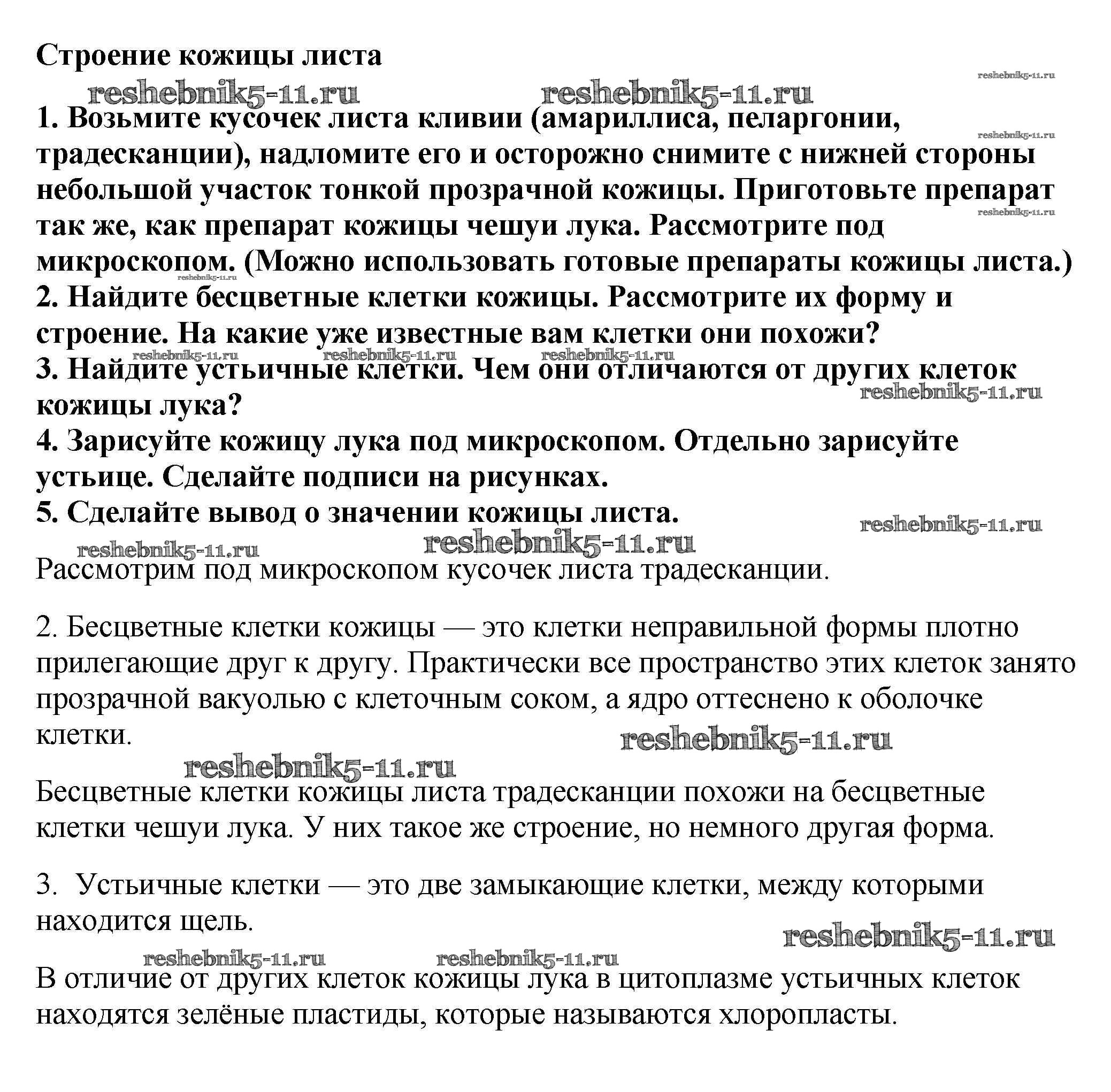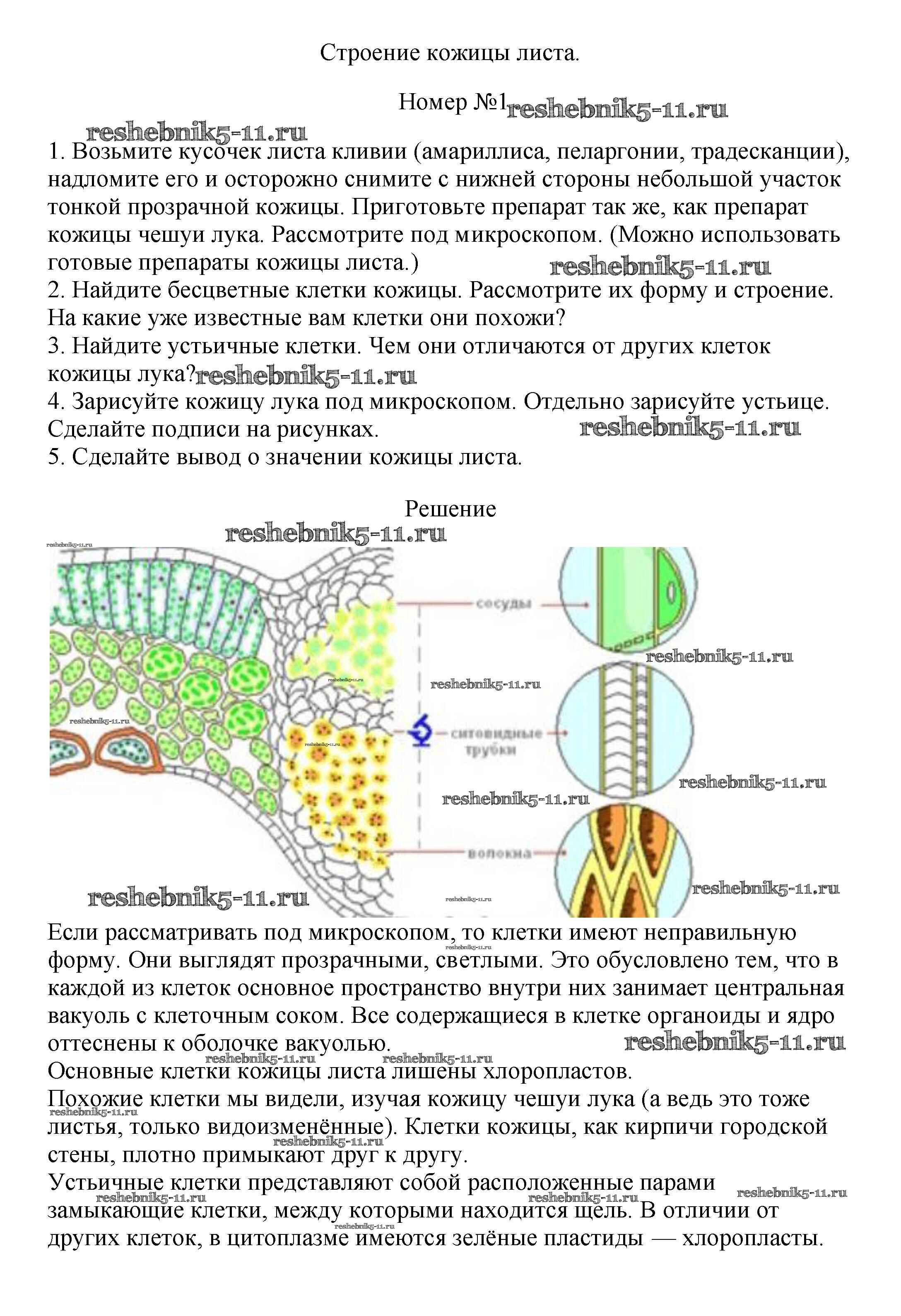 Готовая домашняя работа с ответами по Биологии за 6 класс Пасечник Учебник Линейный курс Дрофа 2020 ФГОС - Строение кожицы листа 1