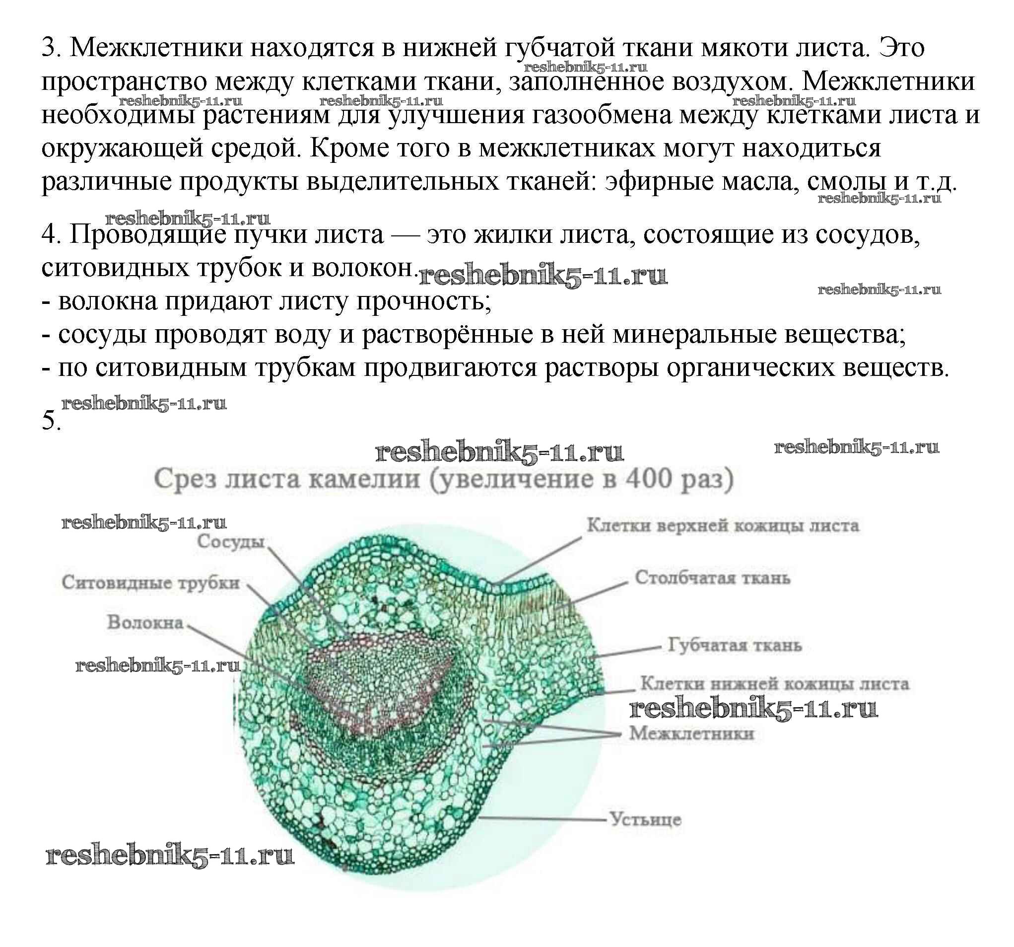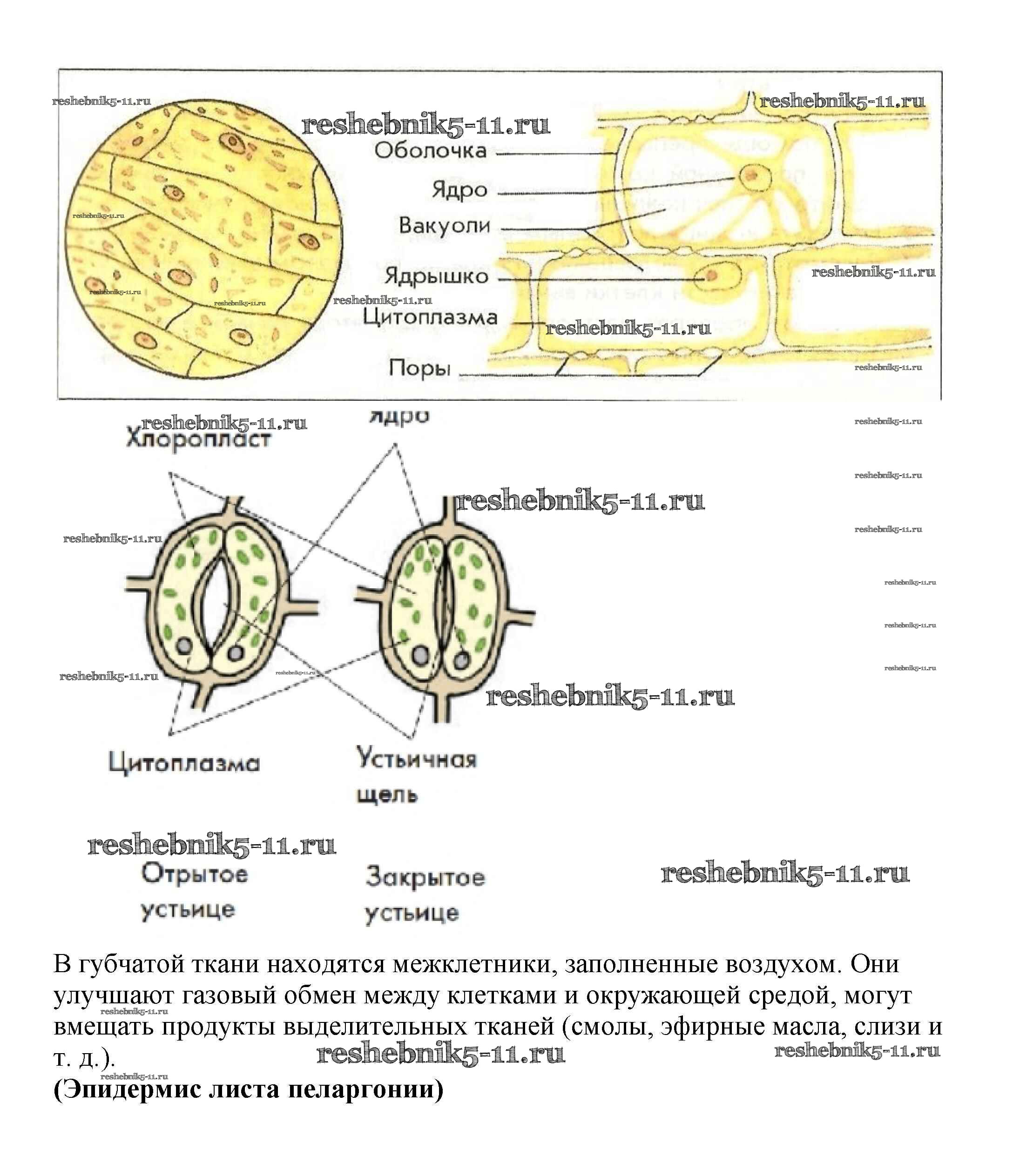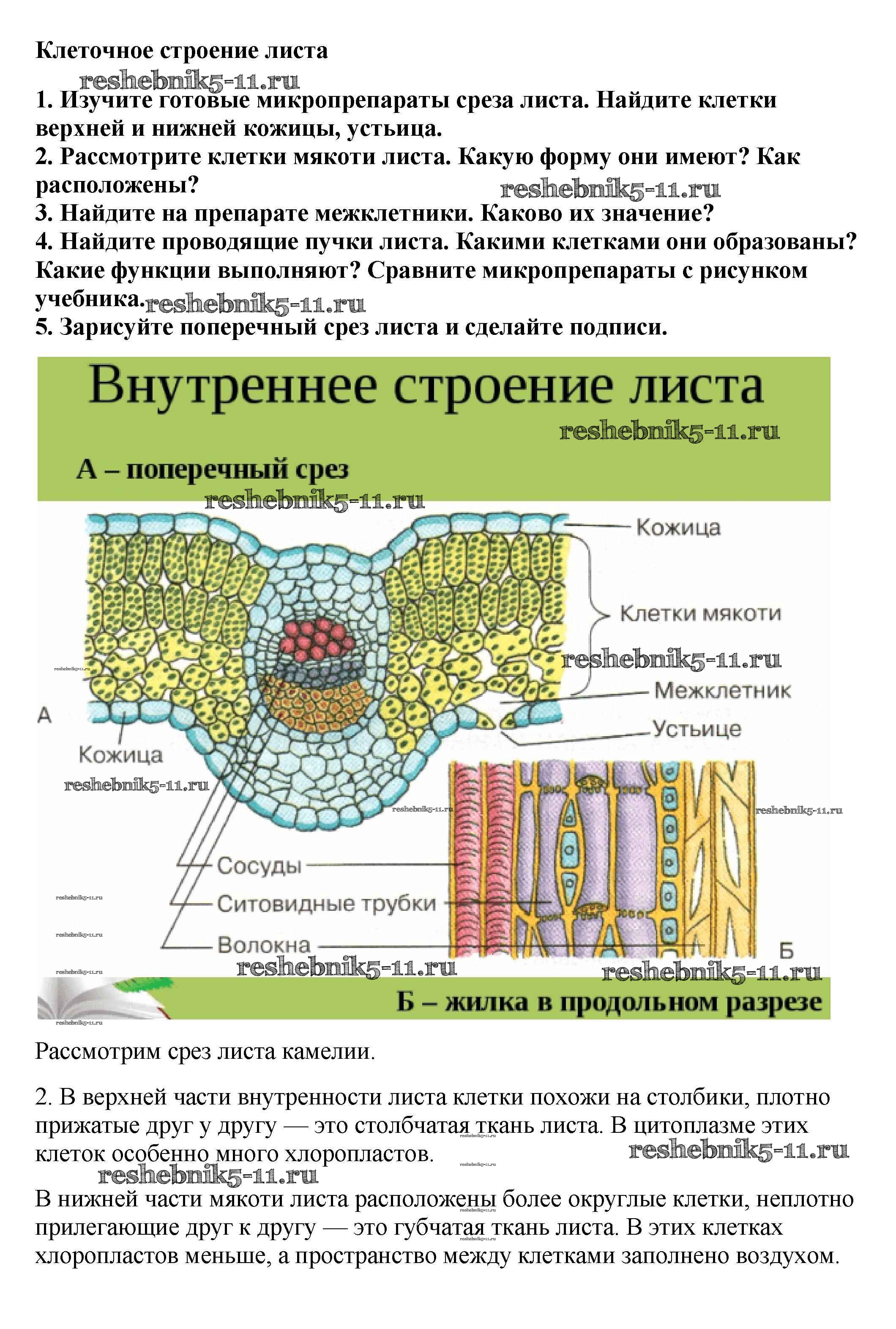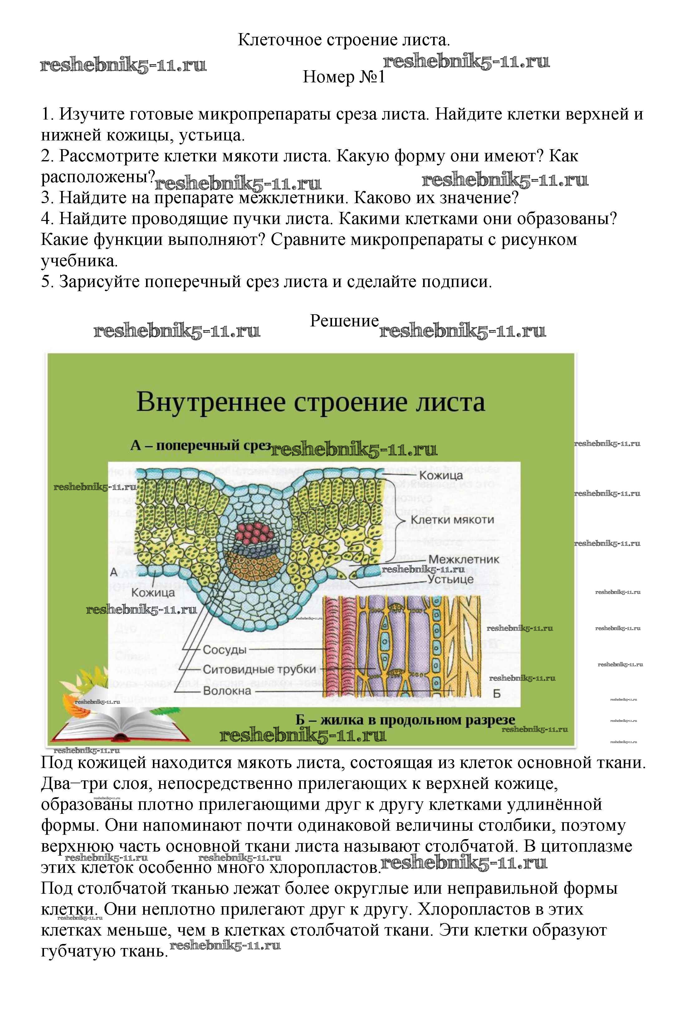 Готовая домашняя работа с ответами по Биологии за 6 класс Пасечник Учебник Линейный курс Дрофа 2020 ФГОС - Клеточное строение листа 1