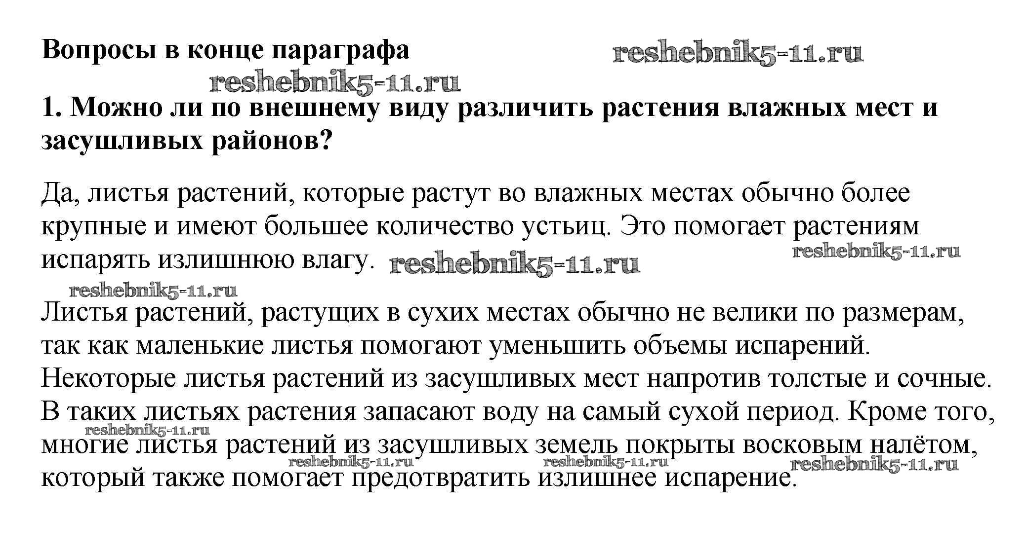 Готовая домашняя работа с ответами по Биологии за 6 класс Пасечник Учебник Линейный курс Дрофа 2020 ФГОС - Вопросы 1