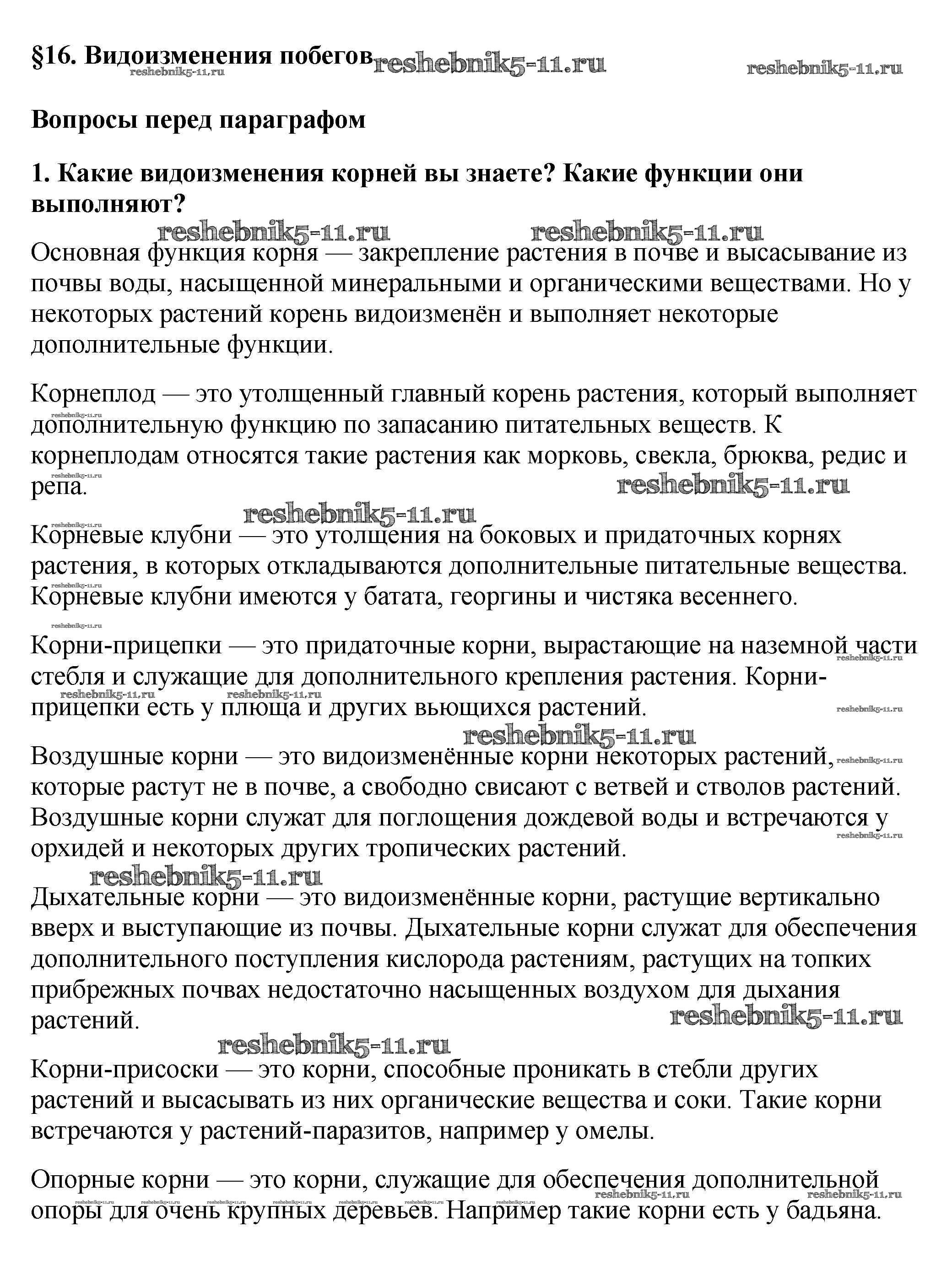 Биология за 6 класс Пасечник Учебник Линейный курс Дрофа вопрос перед параграфом 1