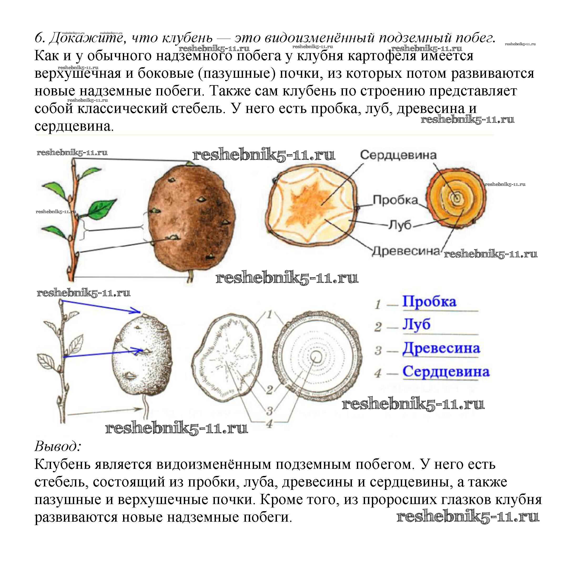 Готовая домашняя работа с ответами по Биологии за 6 класс Пасечник Учебник Линейный курс Дрофа 2020 ФГОС - Строение клубня 1