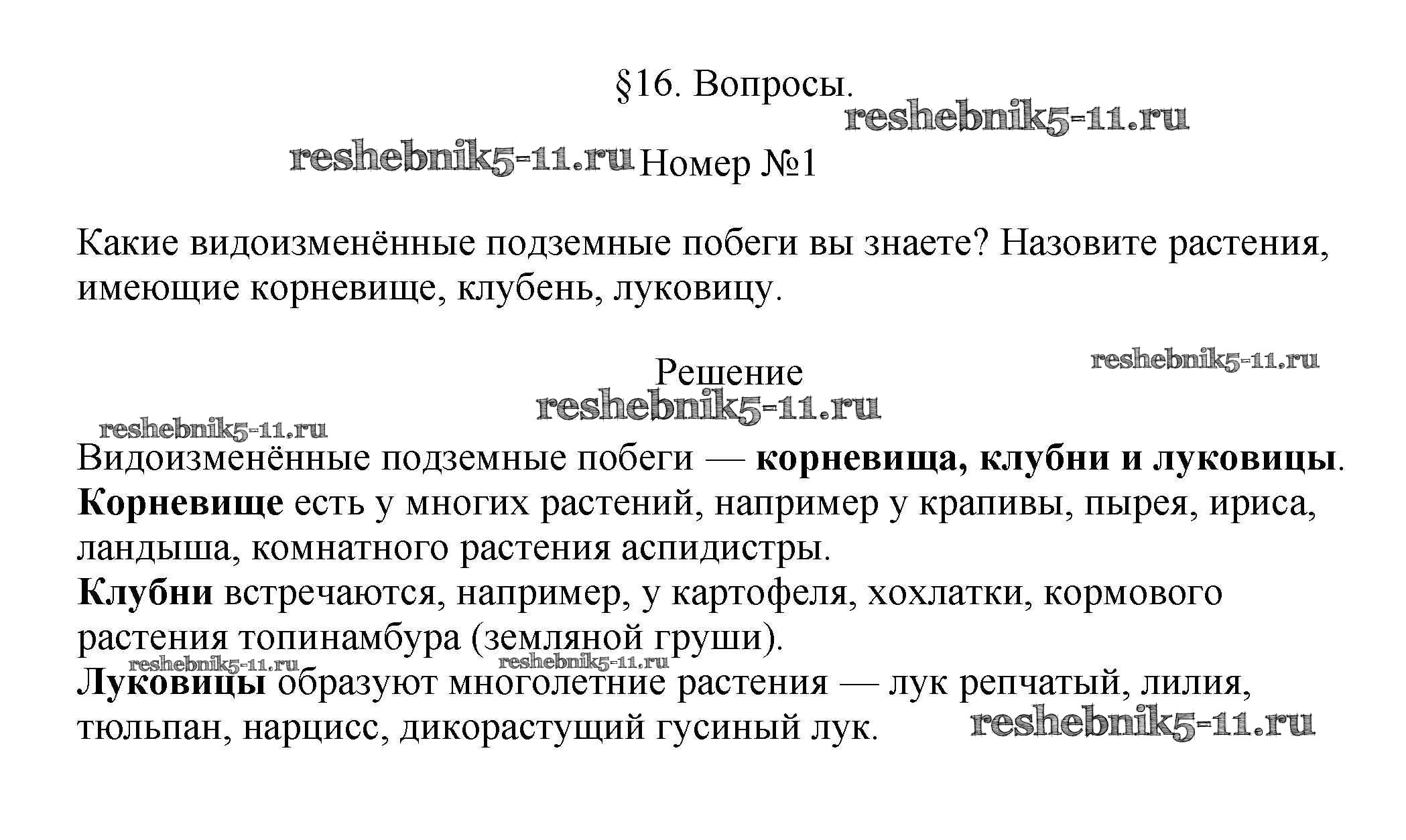 Готовая домашняя работа с ответами по Биологии за 6 класс Пасечник Учебник Линейный курс Дрофа 2020 ФГОС - Вопросы 1