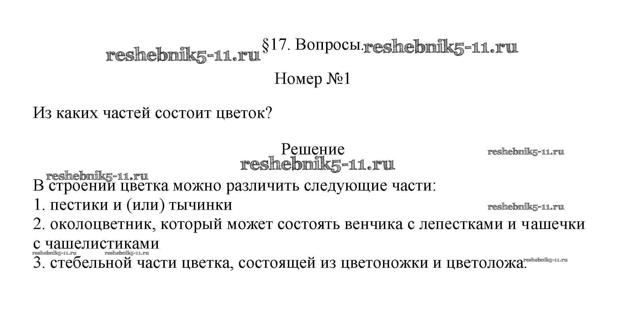 Готовая домашняя работа с ответами по Биологии за 6 класс Пасечник Учебник Линейный курс Дрофа 2020 ФГОС - Вопросы 1