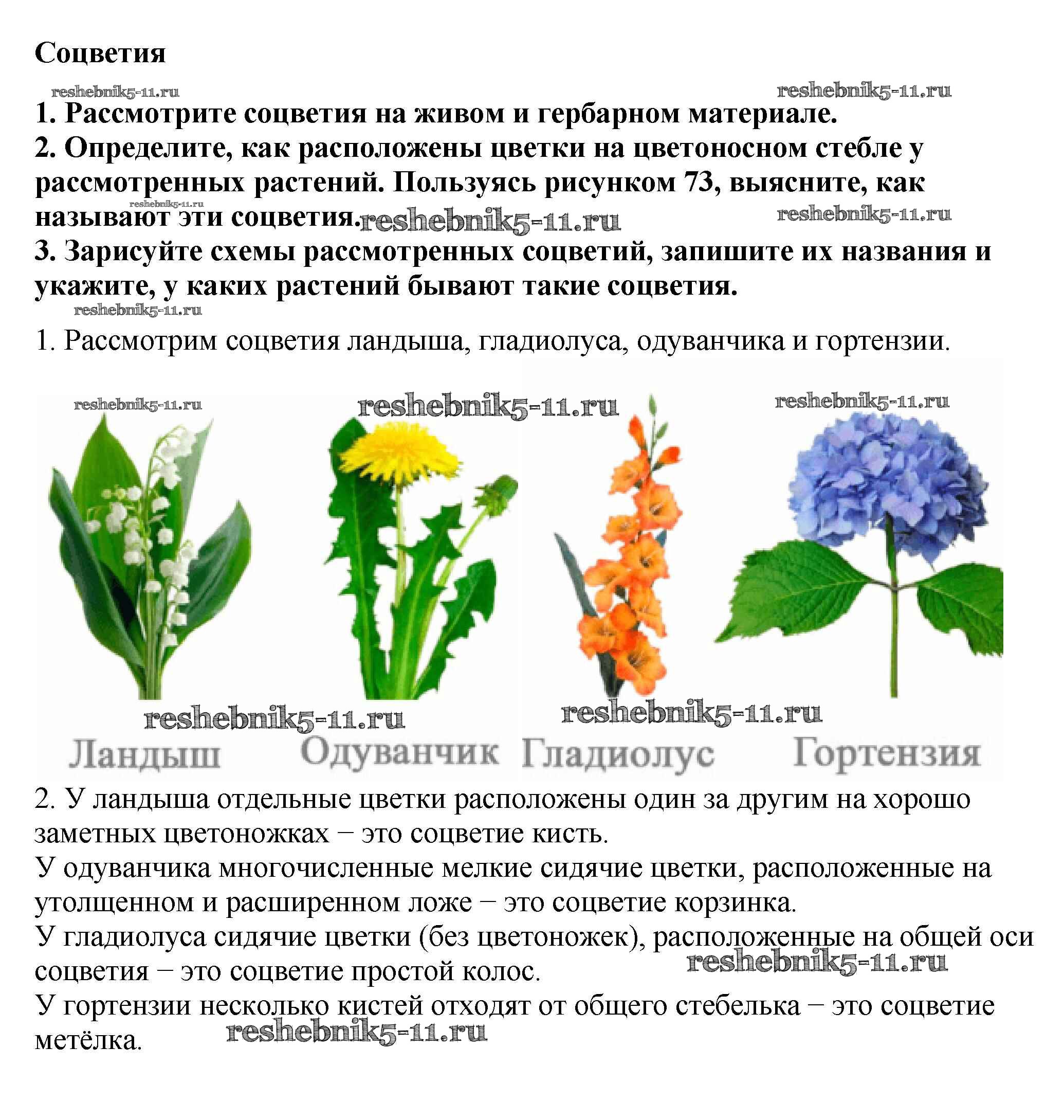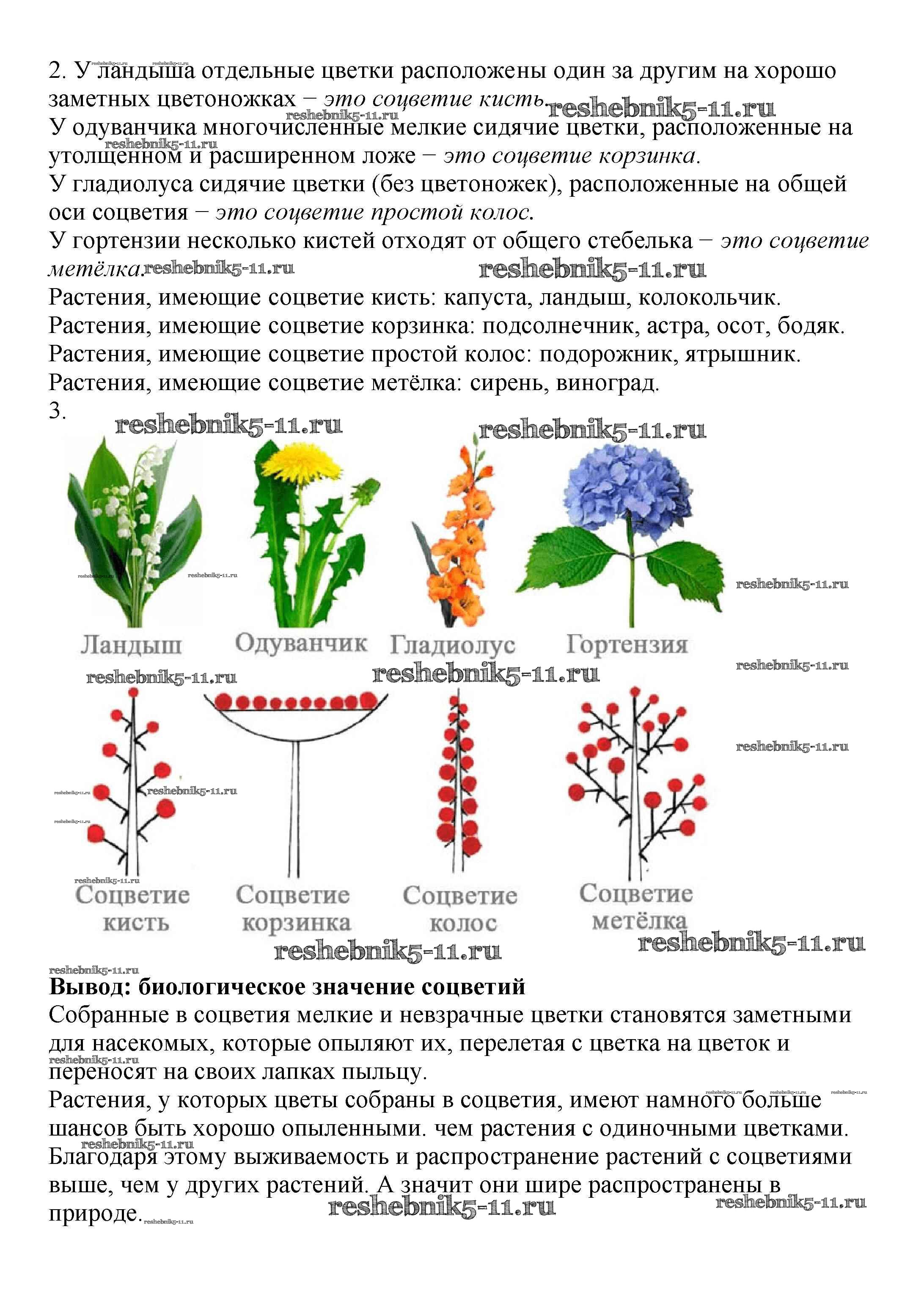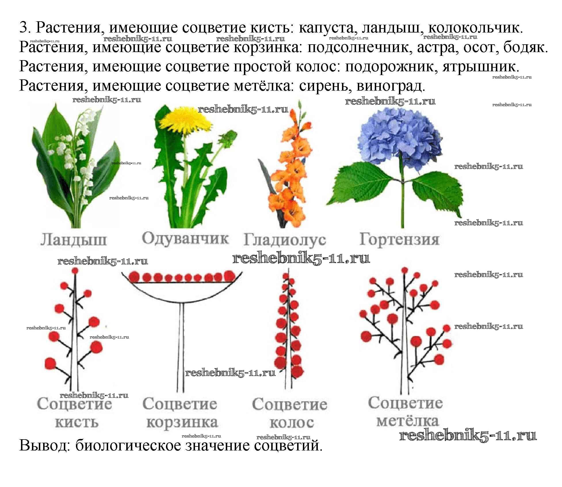 Готовая домашняя работа с ответами по Биологии за 6 класс Пасечник Учебник Линейный курс Дрофа 2020 ФГОС - Соцветия 1