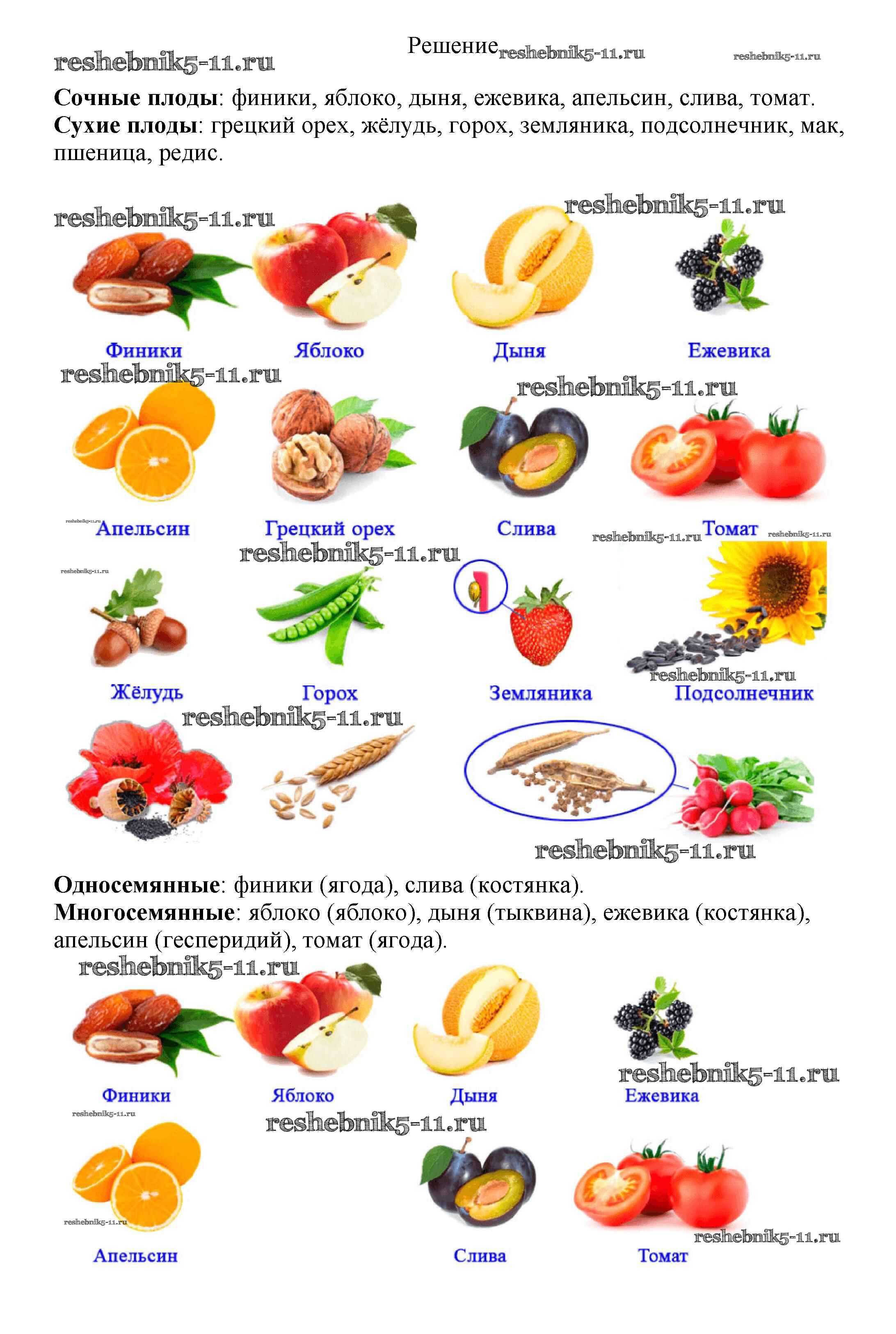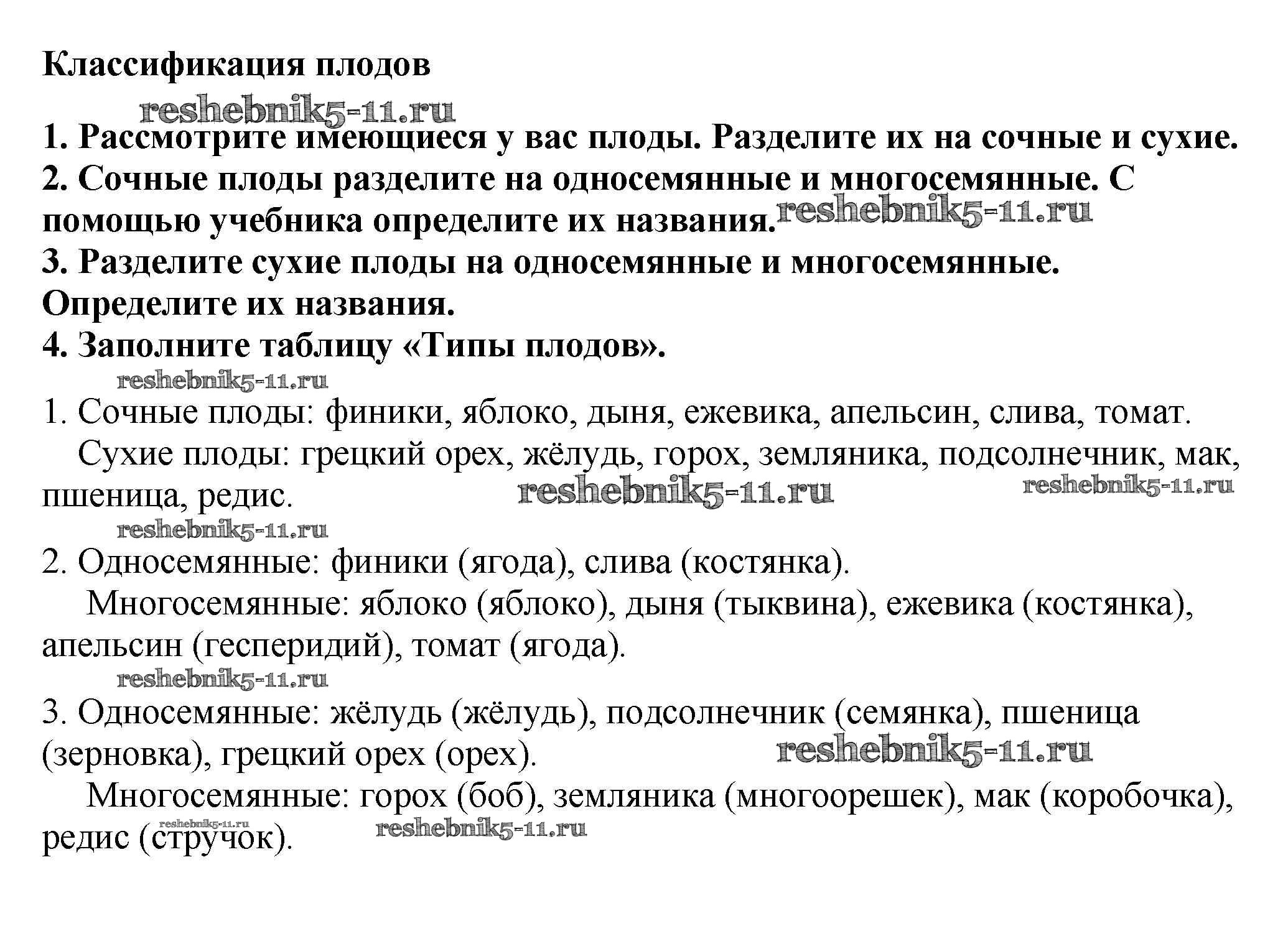 Решебник №2 / §19 / классификация плодов / 1