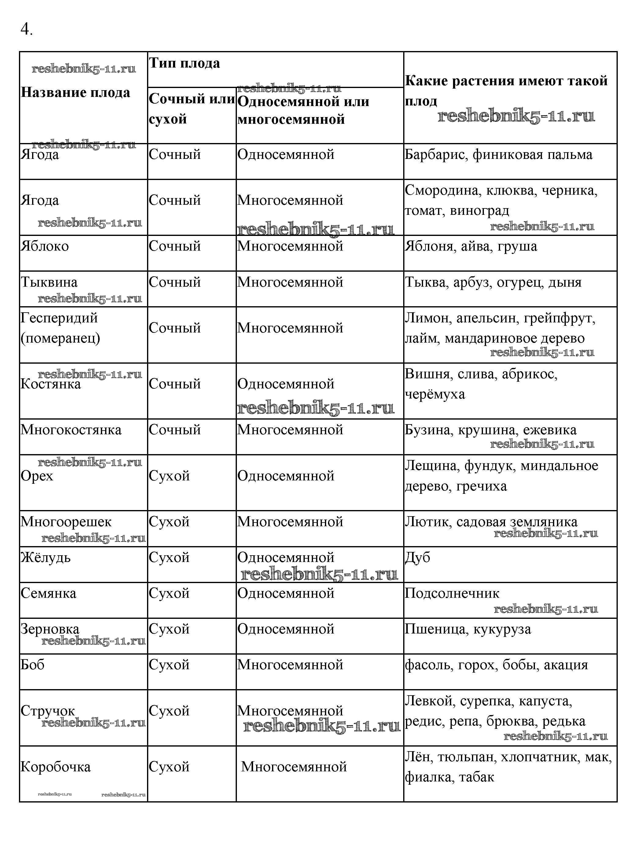 Готовая домашняя работа с ответами по Биологии за 6 класс Пасечник Учебник Линейный курс Дрофа 2020 ФГОС - Классификация плодов 1