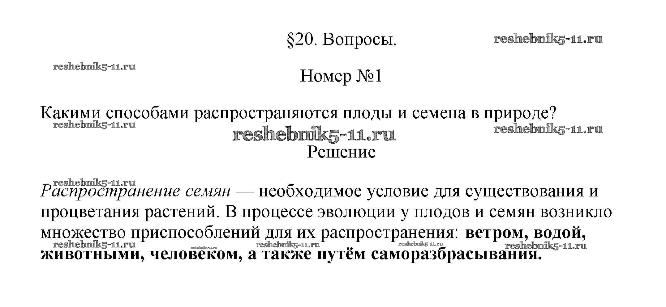 Готовая домашняя работа с ответами по Биологии за 6 класс Пасечник Учебник Линейный курс Дрофа 2020 ФГОС - Вопросы 1