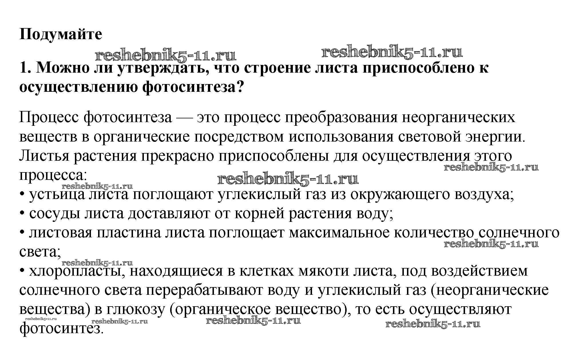 Биология за 6 класс Пасечник Учебник Линейный курс Дрофа подумайте 1