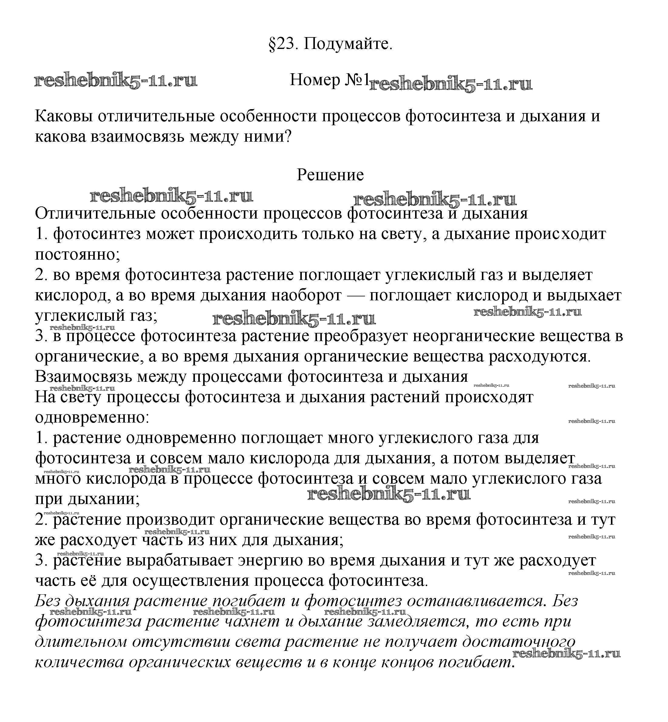 Биология за 6 класс Пасечник Учебник Линейный курс Дрофа подумайте 1
