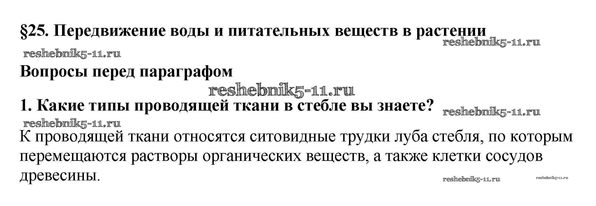 Биология за 6 класс Пасечник Учебник Линейный курс Дрофа вопрос перед параграфом 1