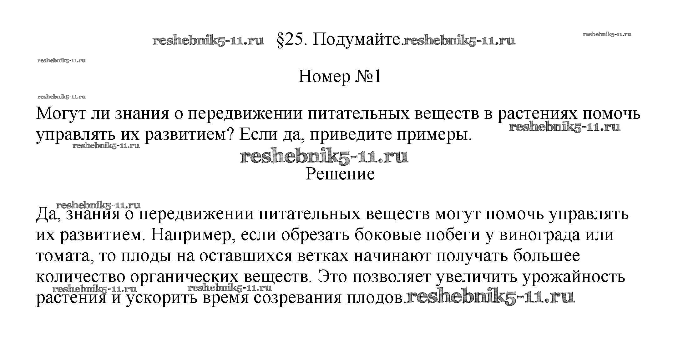 Биология за 6 класс Пасечник Учебник Линейный курс Дрофа подумайте 1