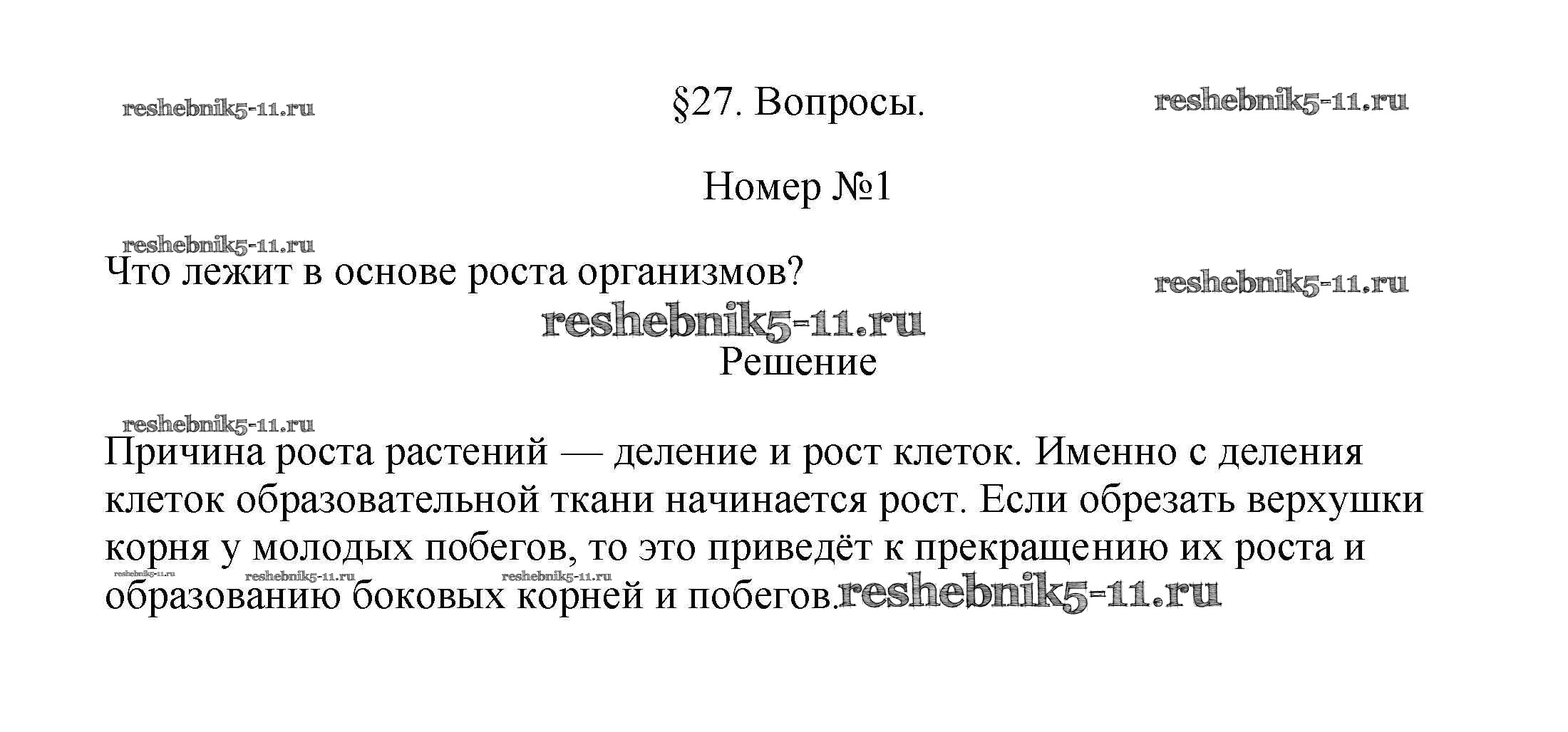 Готовая домашняя работа с ответами по Биологии за 6 класс Пасечник Учебник Линейный курс Дрофа 2020 ФГОС - Вопросы 1